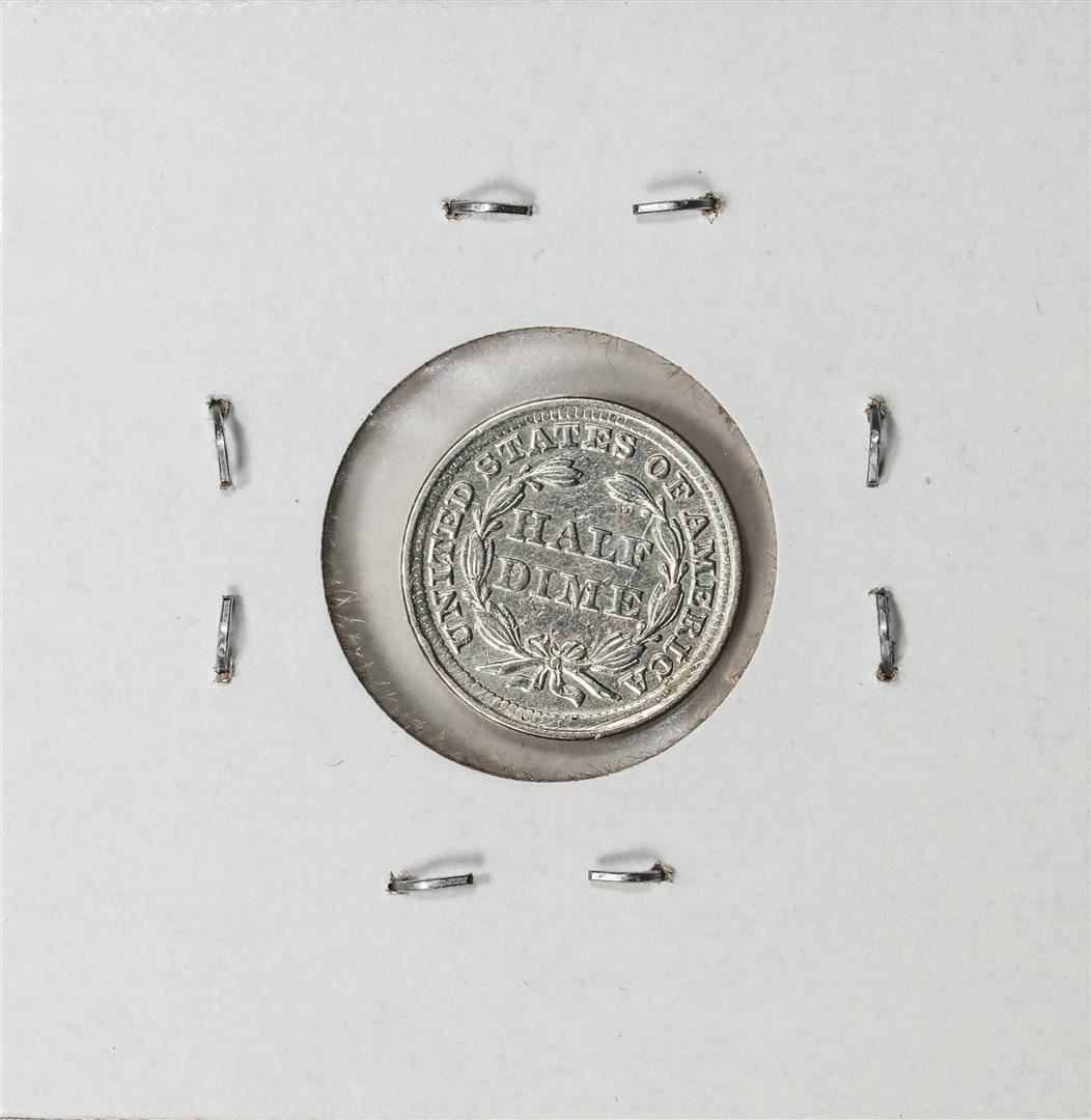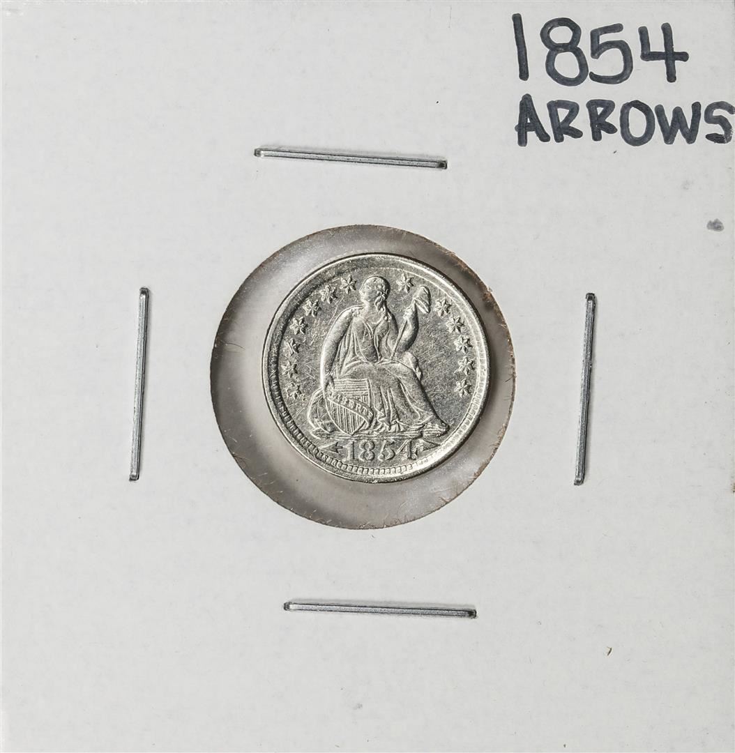 One 1854 Arrows Seated Liberty Half Dime Coin.