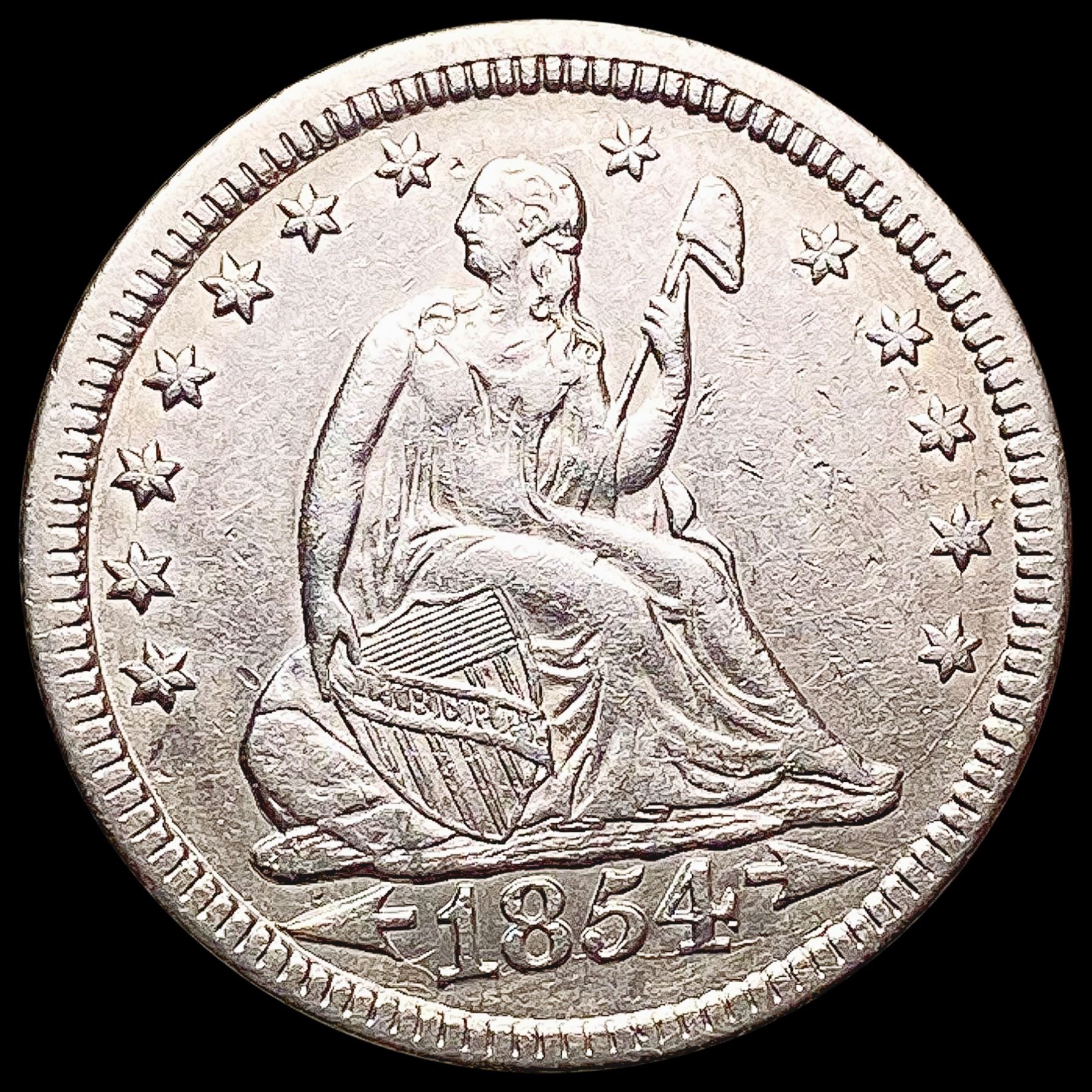 1854 Arrows Seated Liberty Quarter CHOICE AU