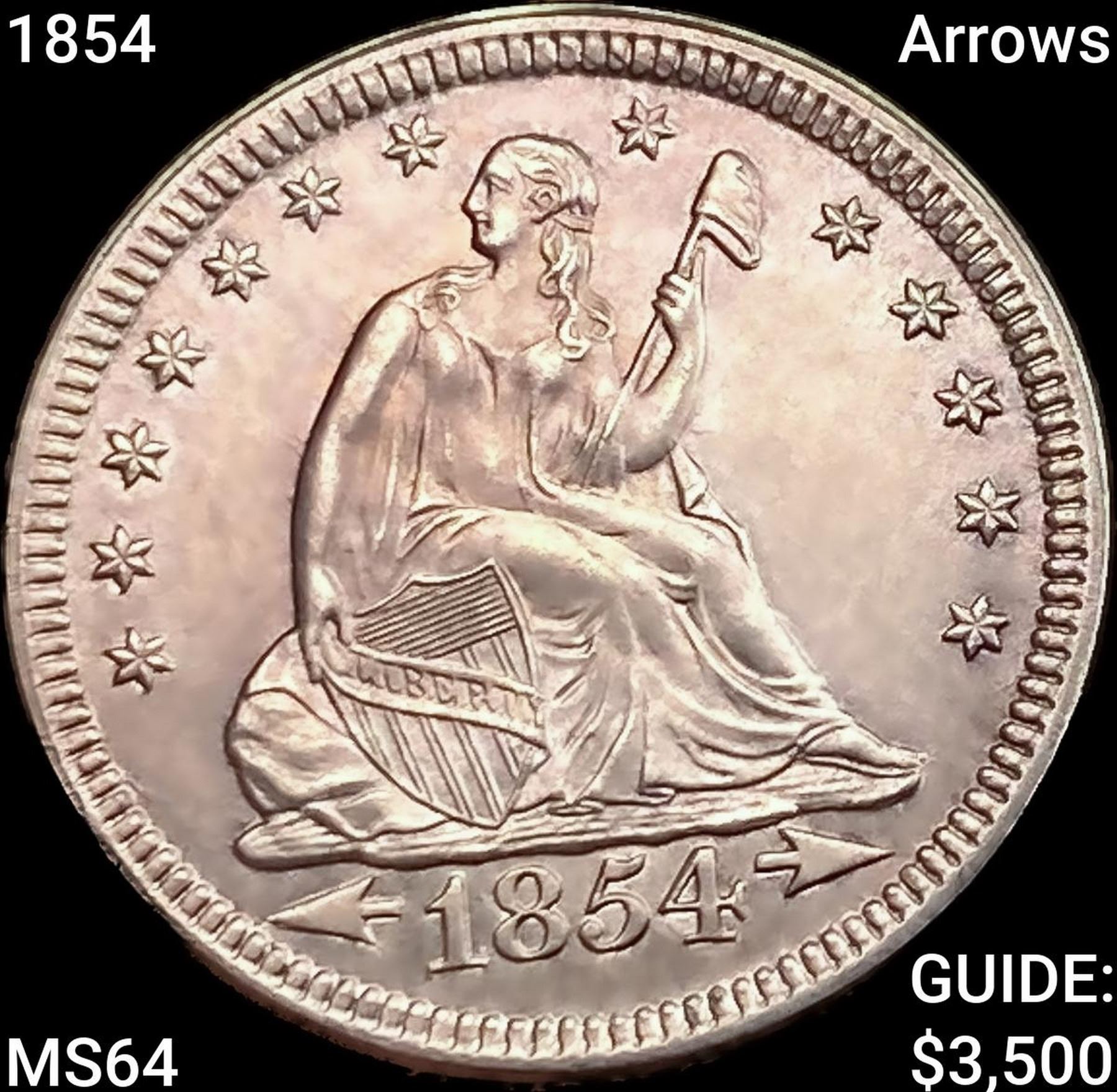 1854 Arrows Seated Liberty Quarter CHOICE BU