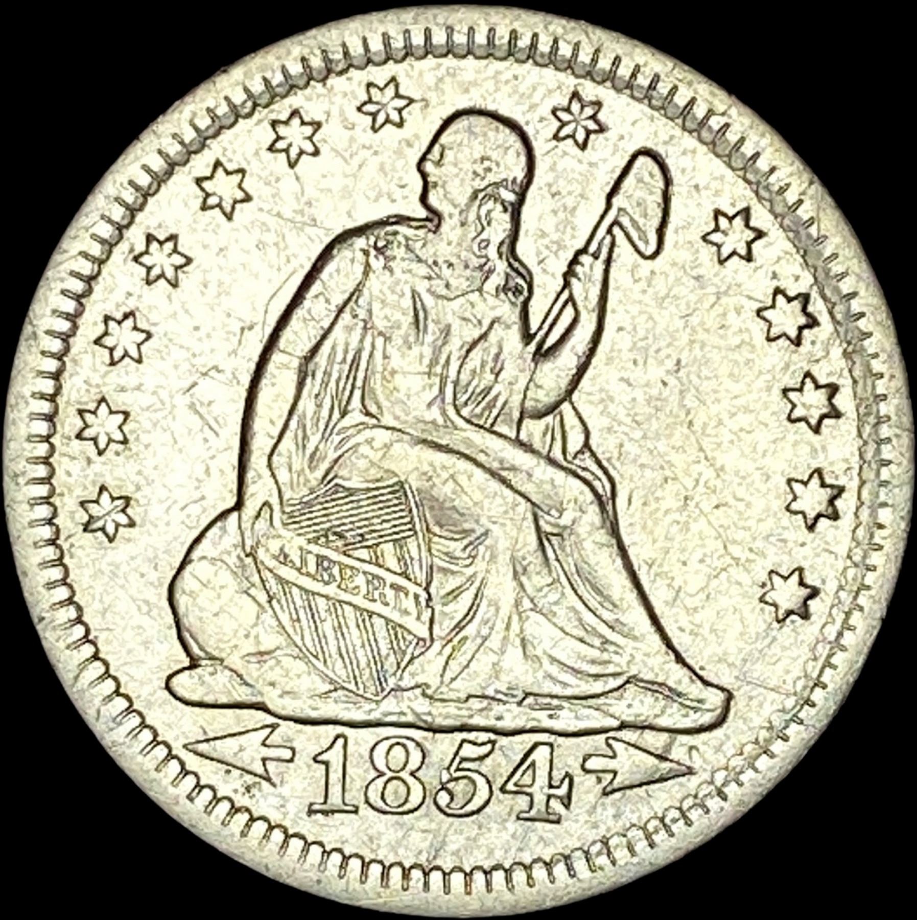 1854 Arrows Seated Liberty Quarter CLOSELY UNCIRCULATED