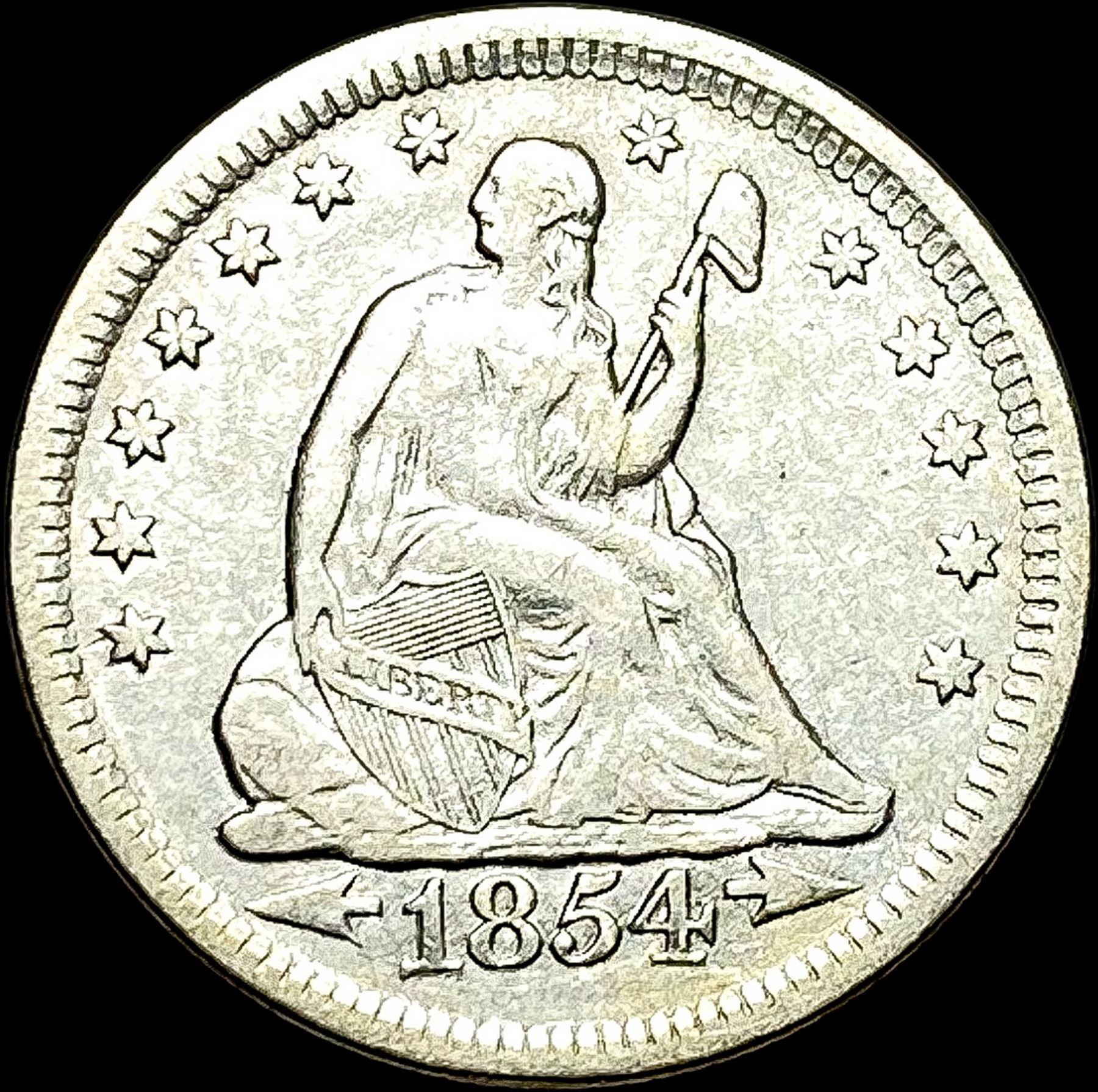1854 Arrows Seated Liberty Quarter LIGHTLY CIRCULATED