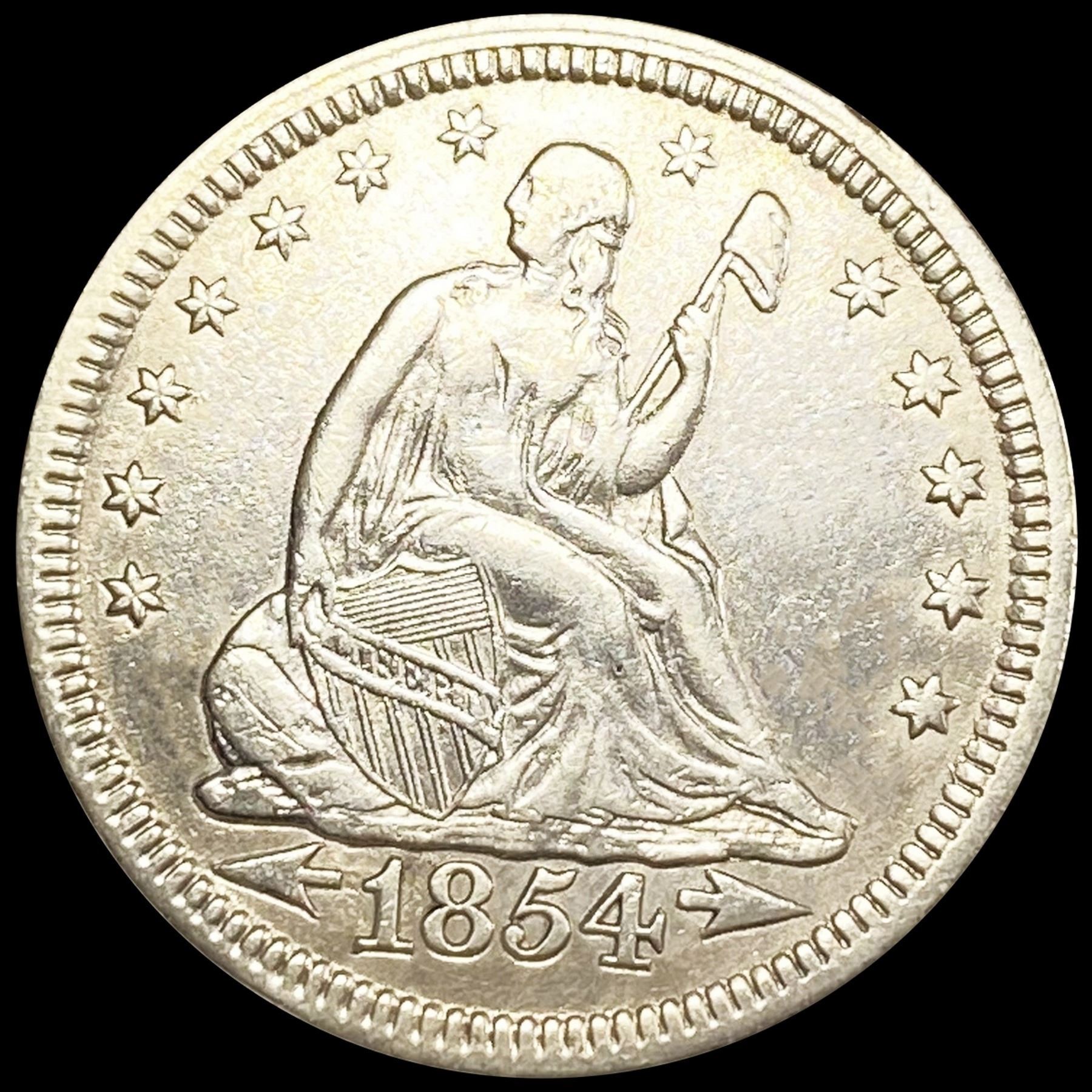 1854 'Arrows' Seated Liberty Quarter NEARLY