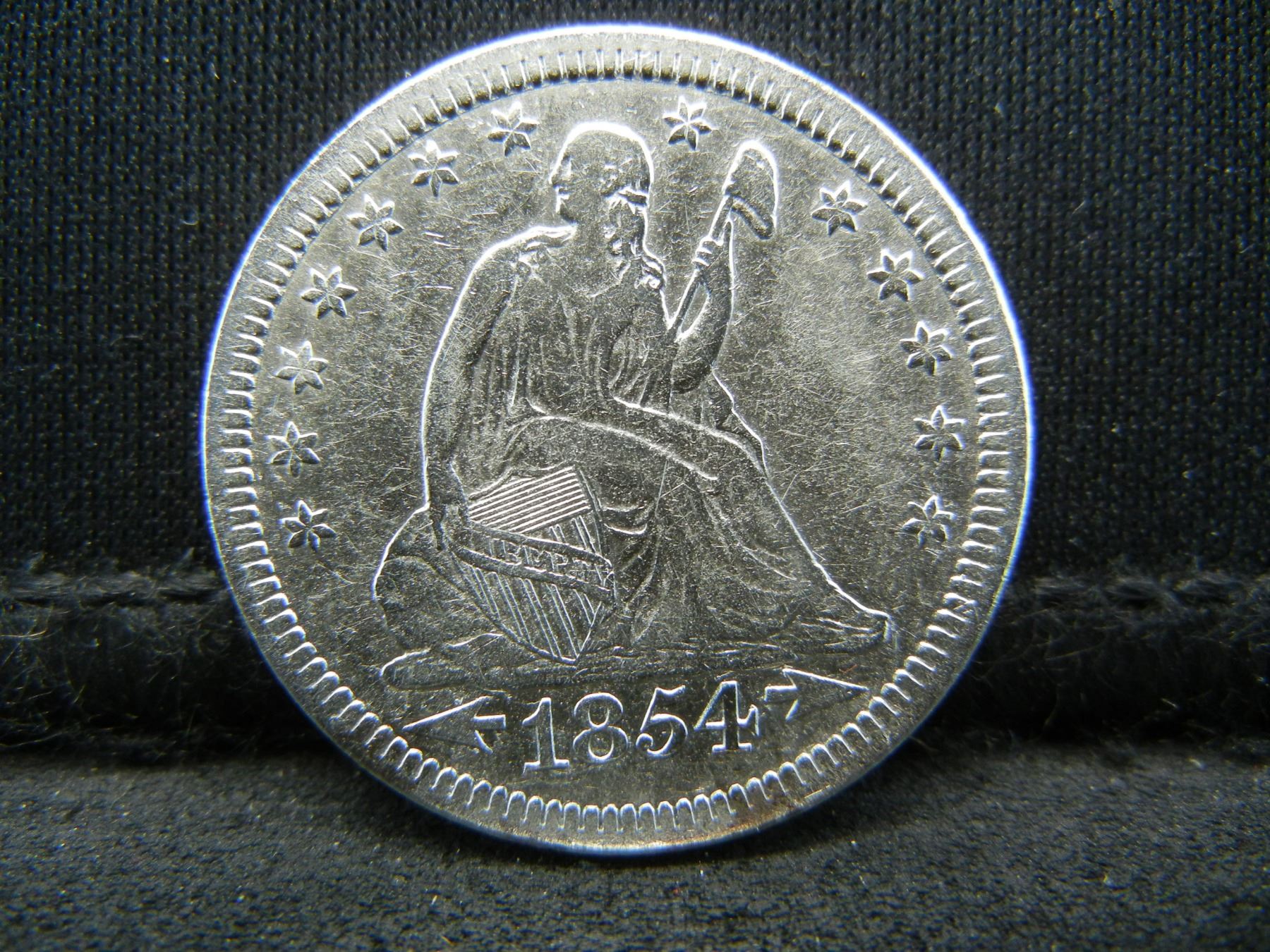1854 Arrows Seated Quarter Full Liberty Better Date
