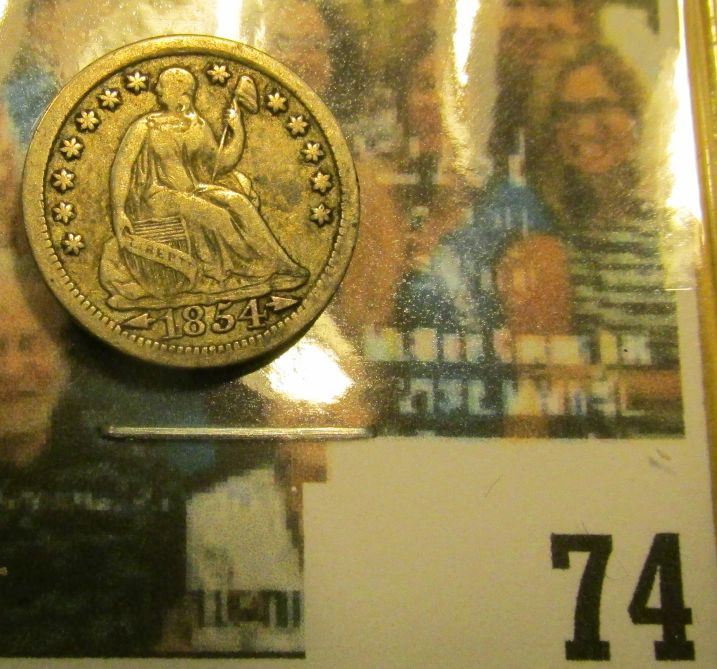 1854 Arrows at Date U.S. Seated Liberty Half Dime, Fine.