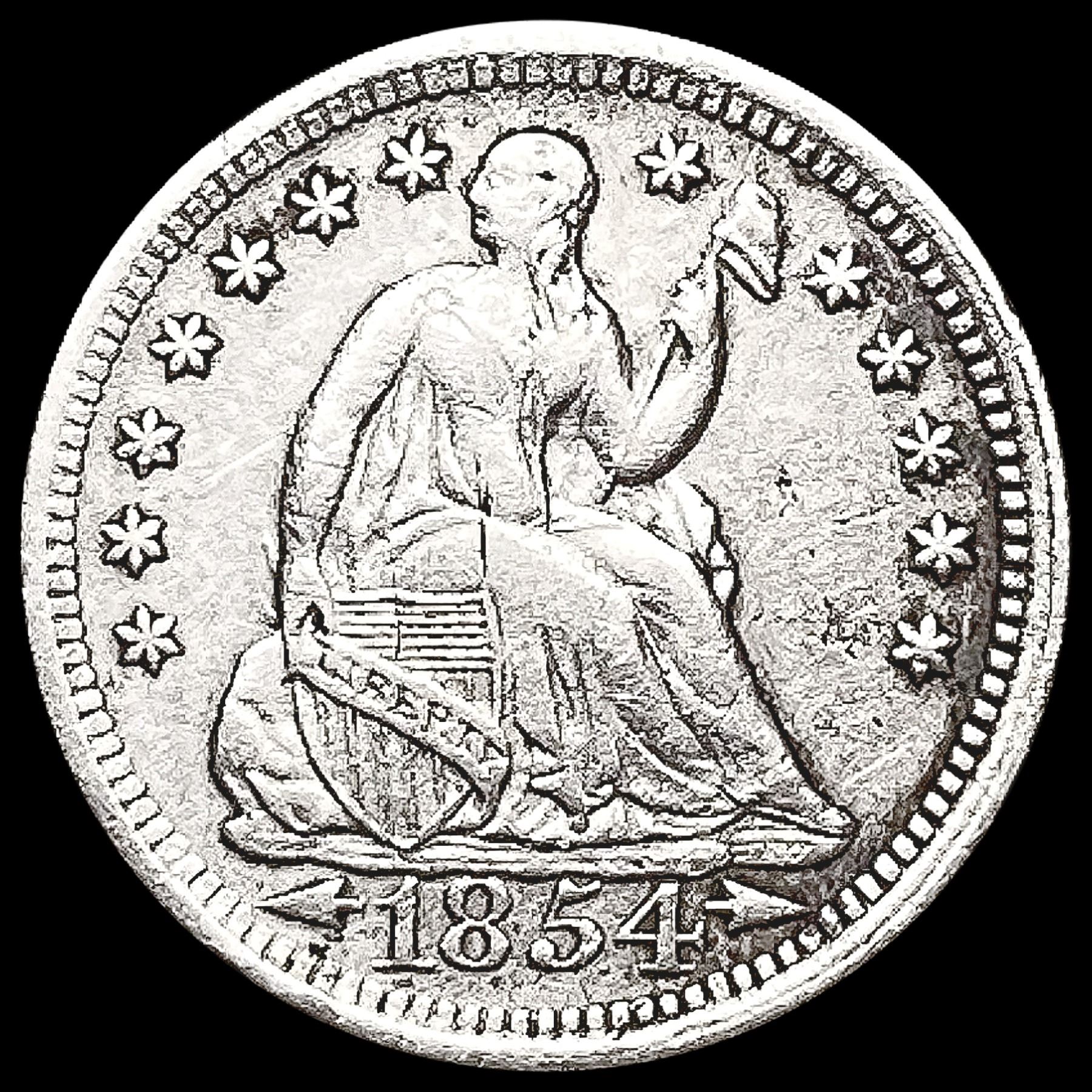 1854 Arws Seated Liberty Half Dime CLOSELY UNCIRCU