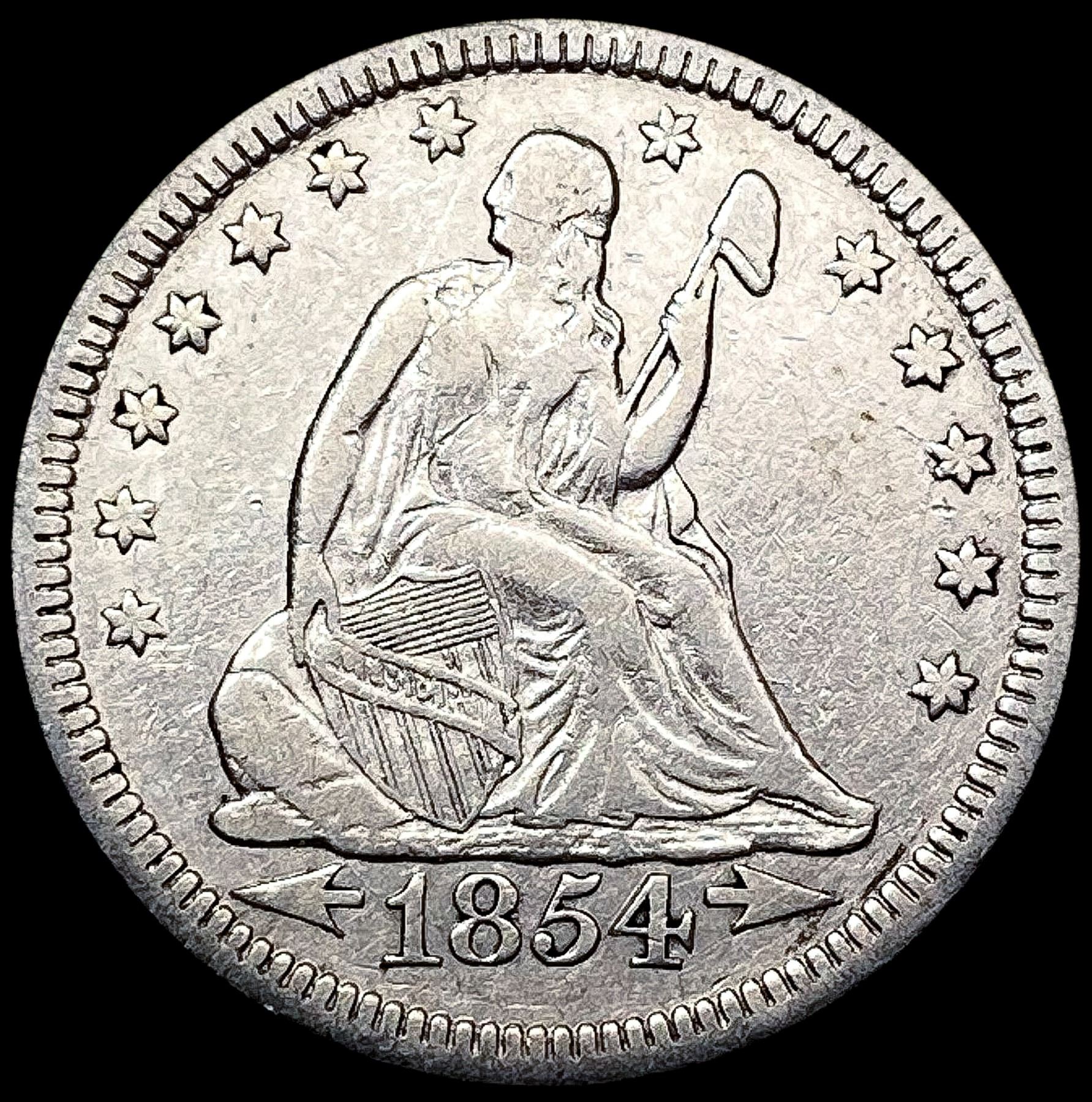 1854 Arws Seated Liberty Quarter CLOSELY UNCIRCULA