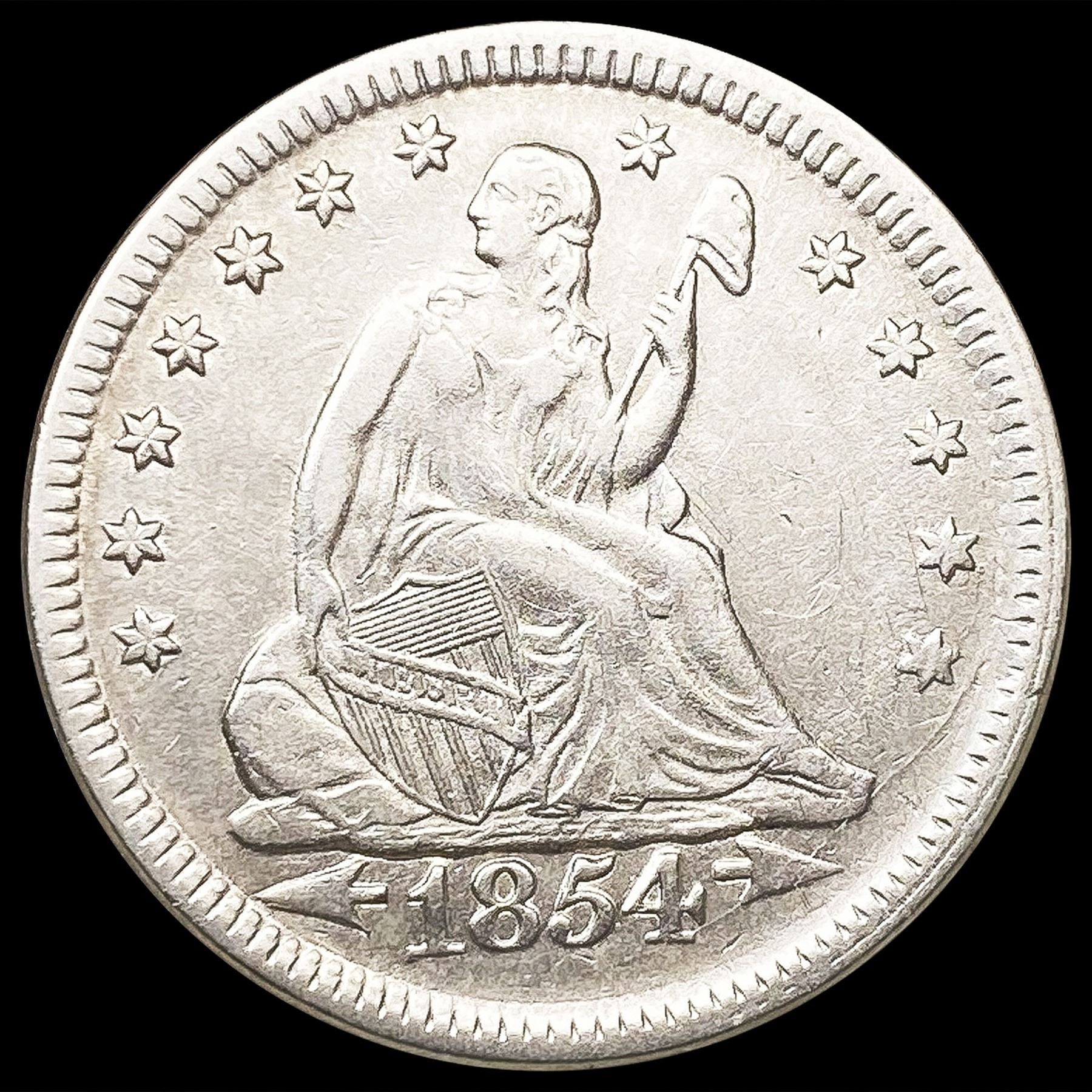 1854 Arws Seated Liberty Quarter CLOSELY UNCIRCULA