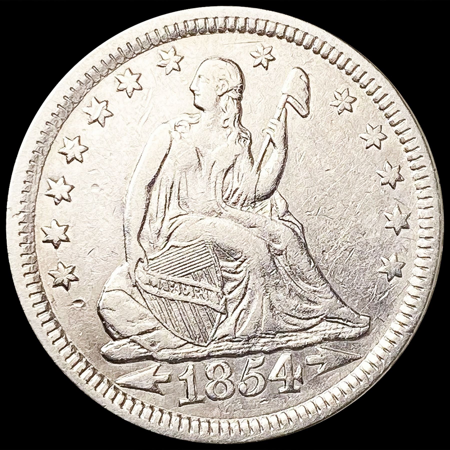 1854 Arws Seated Liberty Quarter CLOSELY UNCIRCULA