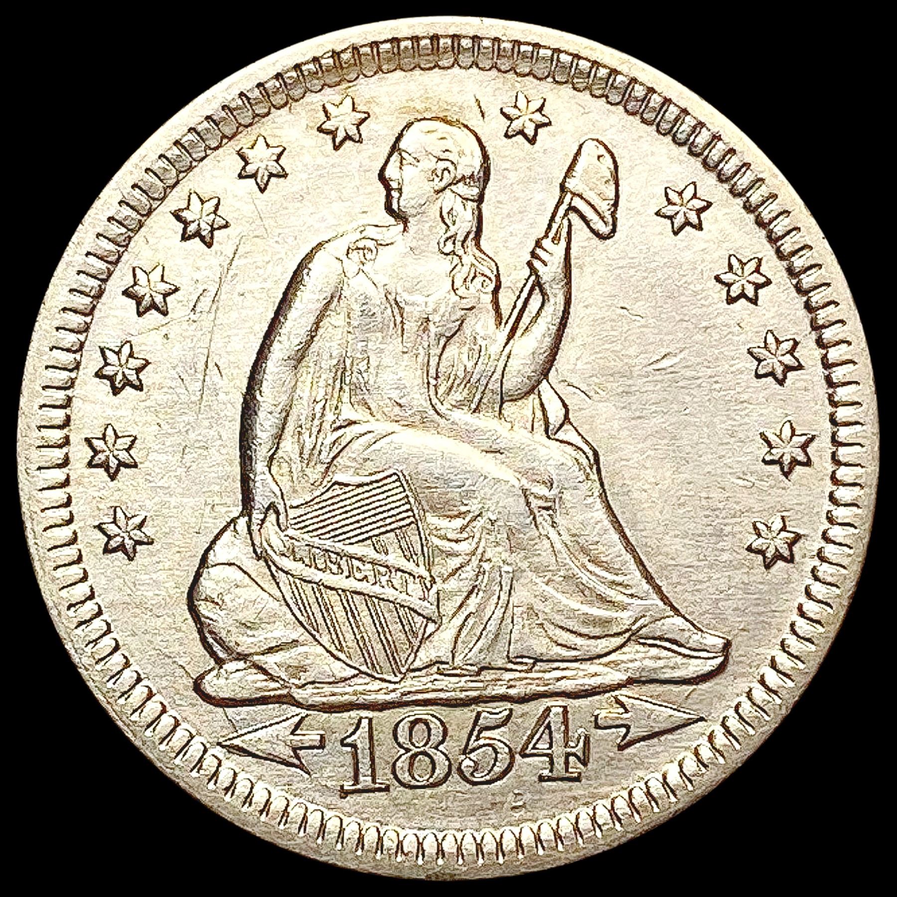 1854 Arws Seated Liberty Quarter CLOSELY UNCIRCULA