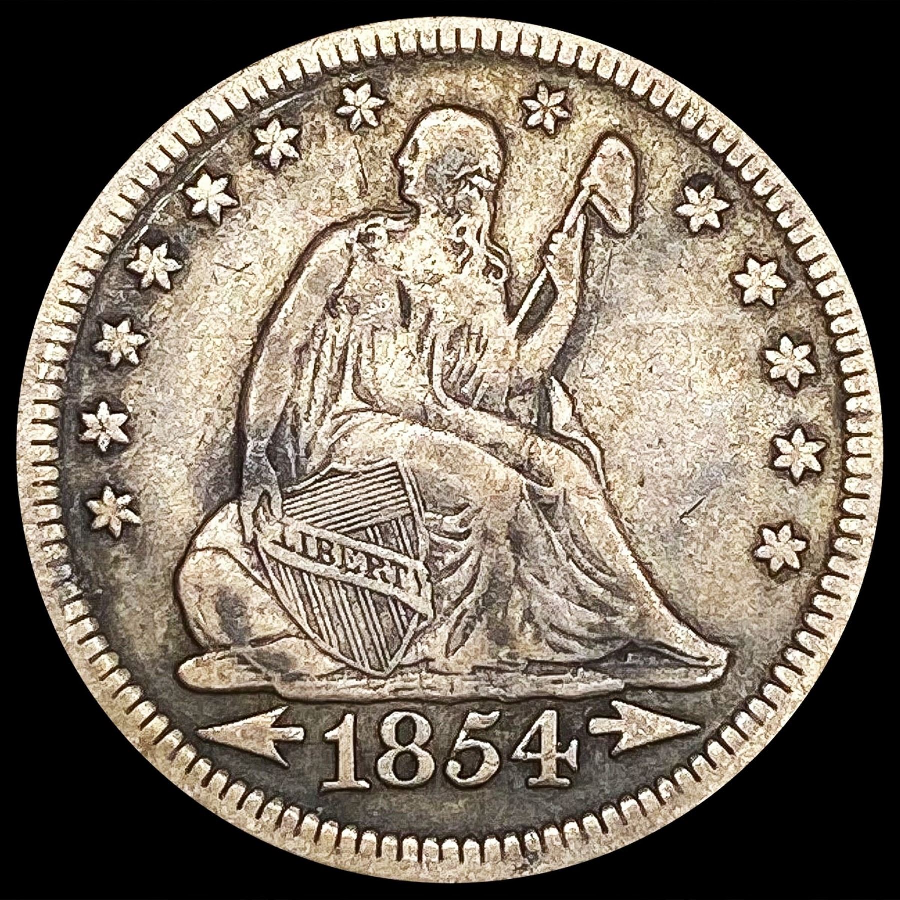 1854 Arws Seated Liberty Quarter LIGHTLY CIRCULATE