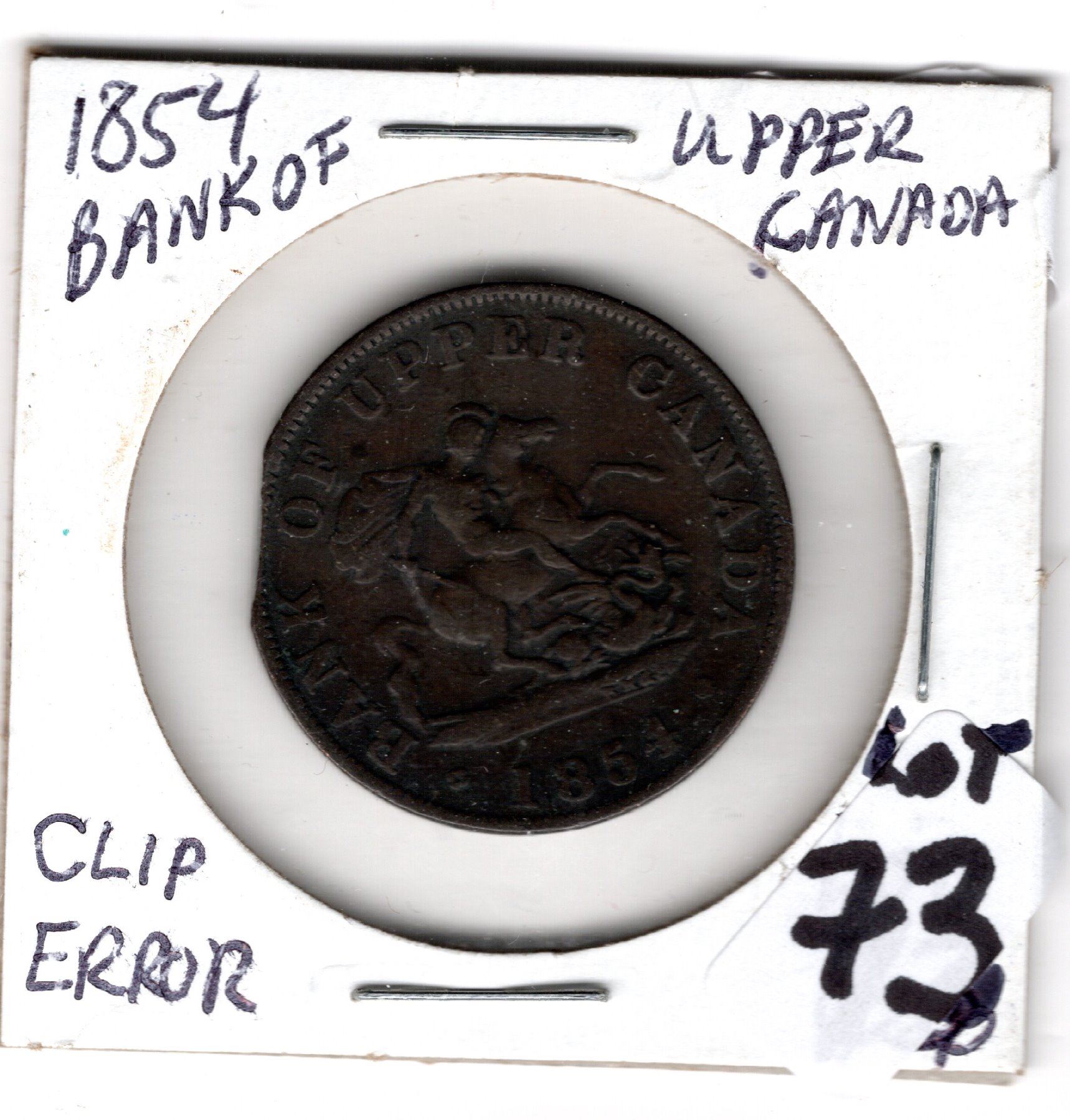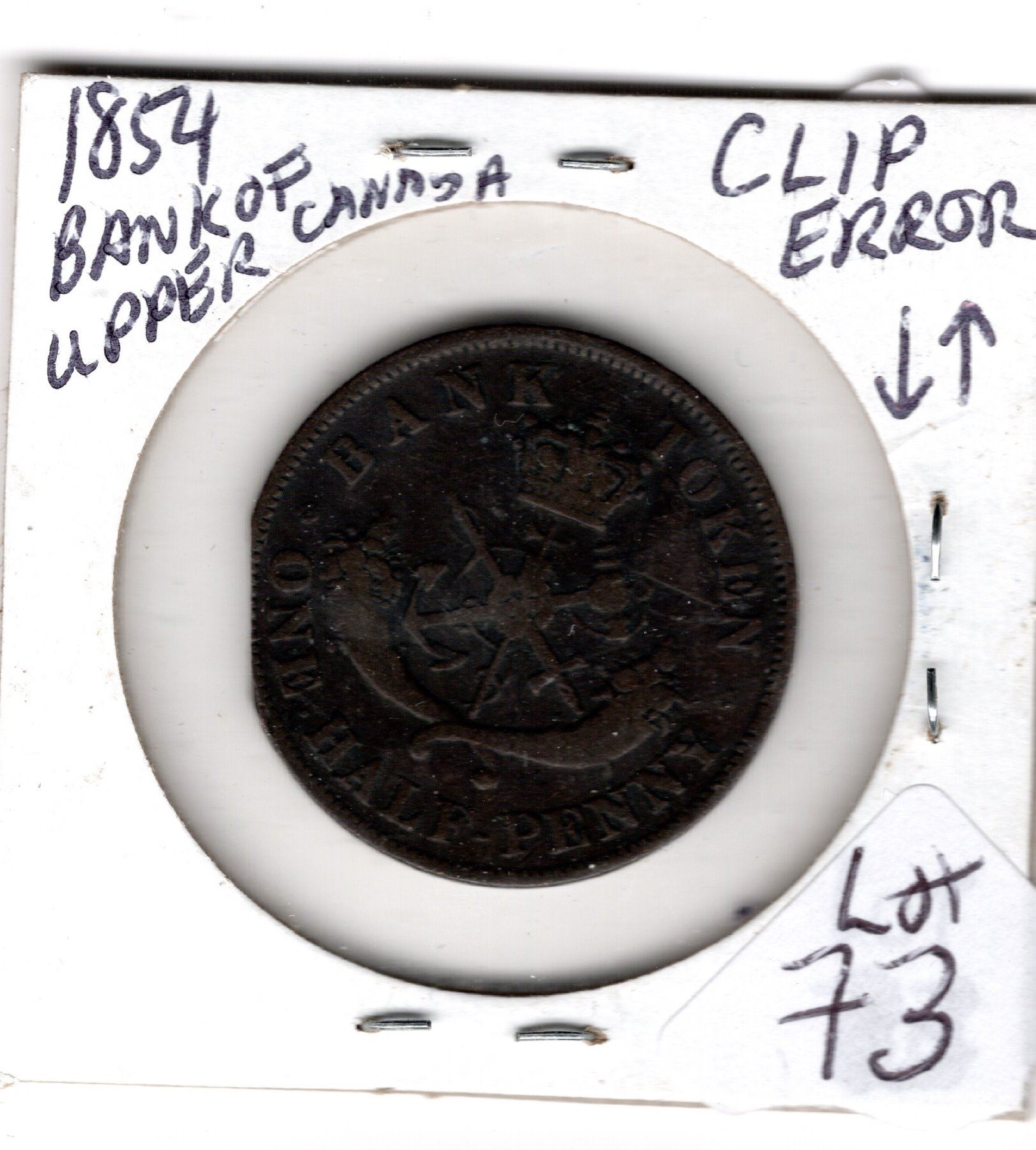 1854 BANK OF UPPER CANADA HALF PENNY TOKEN DRAGON SLAYER CLIP ERROR
