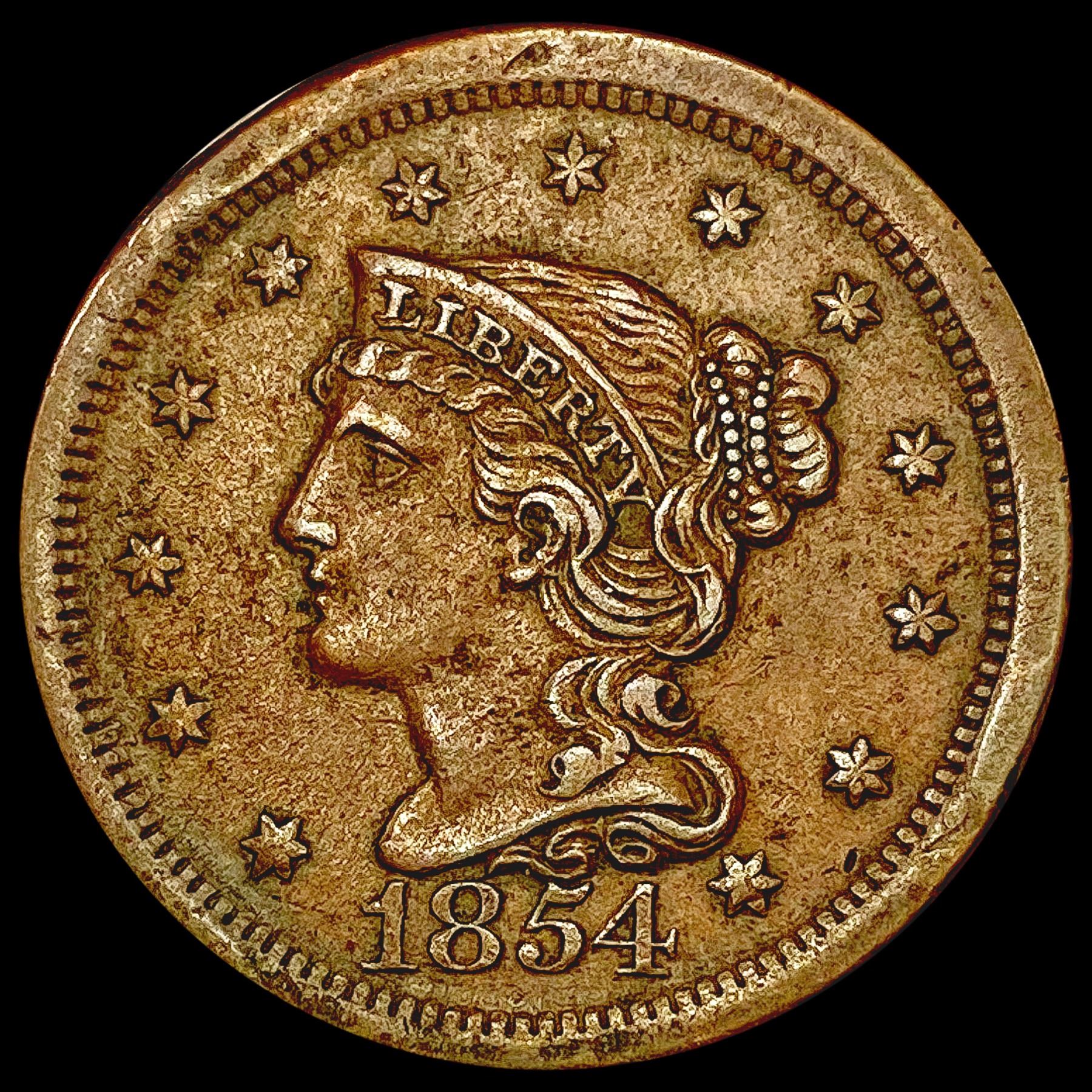 1854 Braided Hair Large Cent CLOSELY UNCIRCULATED