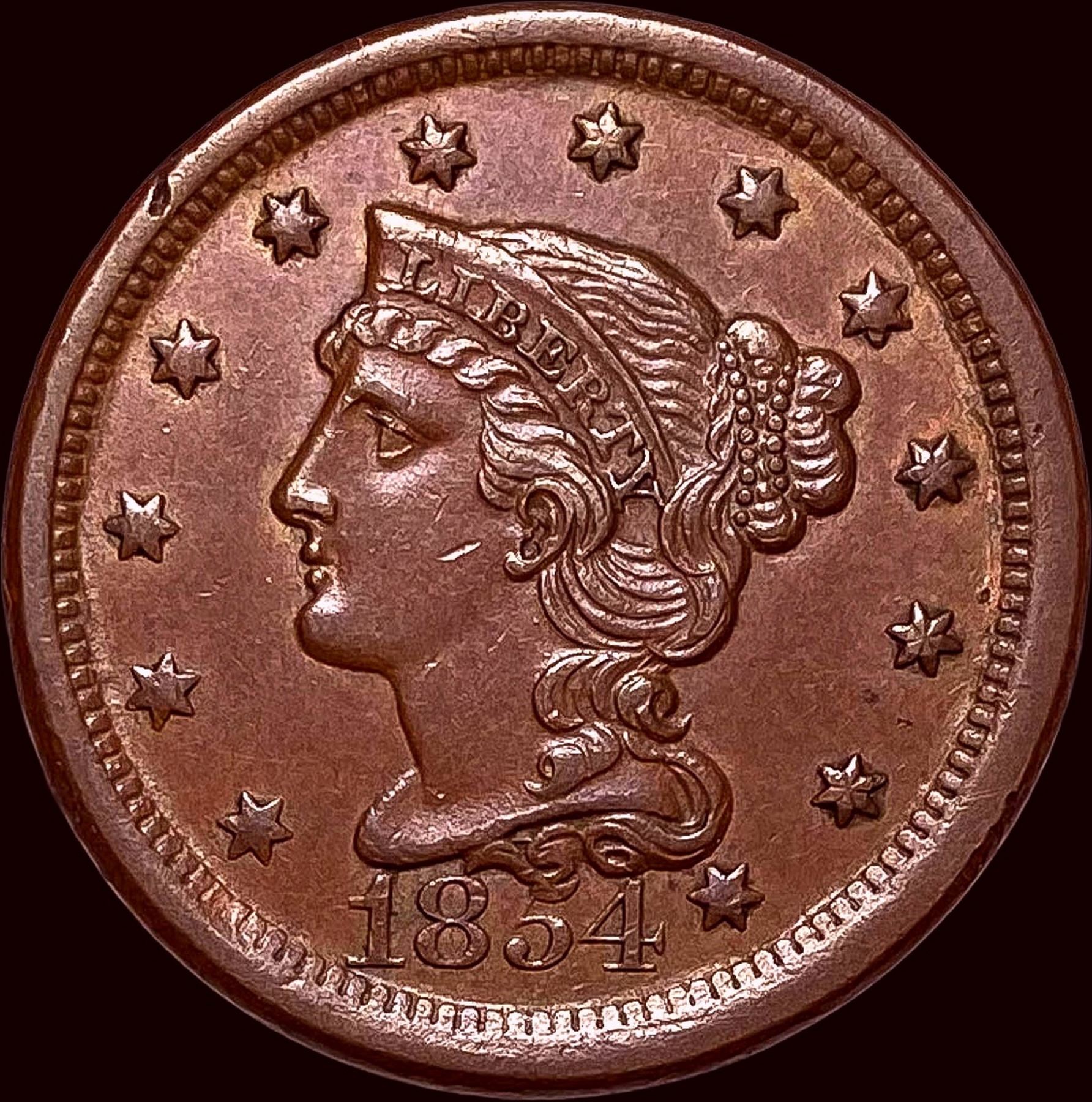 1854 Braided Hair Large Cent CLOSELY UNCIRCULATED