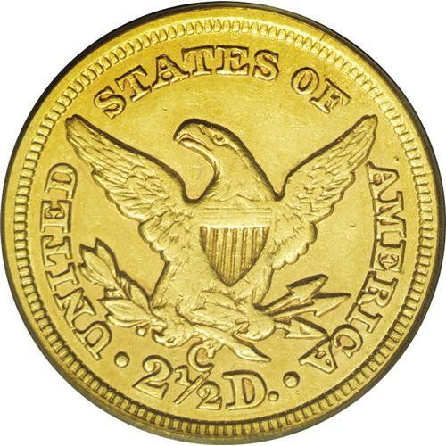 <B>1854-C<$2 1/2> AU53 PCGS.</B></I> Variety 15-I. The 1854-C quarter eagle is rare in Mint State, and many examples encountered in circulated grades have been damaged, cleaned, or otherwise abused. This pleasing example is exceptional in both senses, offering unimpaired, lustrous orange-gold surfaces. The strike is typically weak through the obverse and reverse centers, and the light field ticks and chatter are grade-consistent. The considerable reflectivity in the fields is a bonus. Population: 9 in 53, 18 finer (8/06).