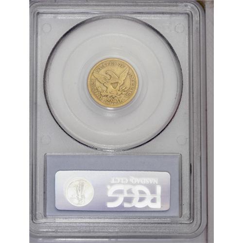 <B>1854-C<$2 1/2> Fine 12 PCGS.</B></I> Variety 15-I, the only known dies. An honestly worn green-gold example with a diagonal pinscratch across Liberty's neck and a couple of noticeable abrasions: one just below and to the left of obverse star 7 and another on the lower crossbar of and just to the left of the 2 in the denomination, along the lower reverse rim. Very difficult as an issue with a mintage of only 7,295 pieces.<BR><I>From The Carolina Gold Collection, Part Three.</B></I>