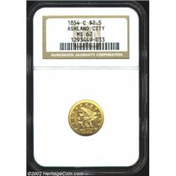 1854-C $2 1/2 MS62 NGC. Winter 15-I. One of the more appealing of several Mint State '54-C Quarter E