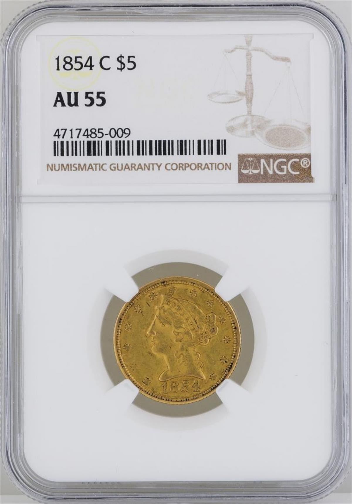 One 1854-C $5 Liberty Head Half Eagle Gold Coin. NGC certified. NGC Certified.