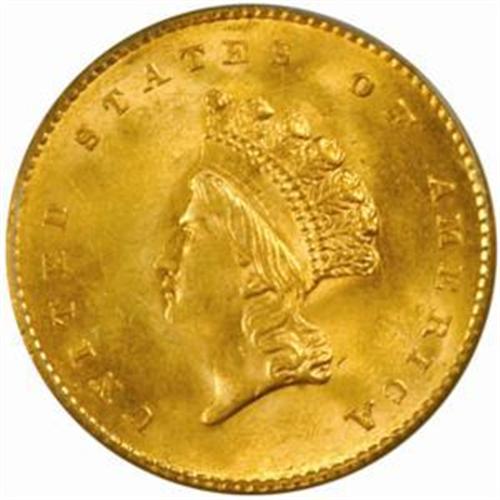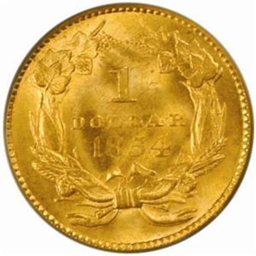 <style type="text/css"> body, td, th { font-family: Arial, Helvetica, sans-serif; font-size: 12px; color: #482424; margin: 0px; padding: 0px; } #header { background-image: url(http://www.bowersandmerena.com/ebay/images/template_v3_01.gif); clear: both; background-color: #590303; border-top-width: 2px; border-top-style: solid; border-top-color: #B38C4F;}#header #header_wrapper { height: 75px; clear: both; width: 800px; margin-right: auto; margin-left: auto; background-image: url(http://www.bowersandmerena.com/ebay/images/template_v3_03.gif); background-repeat: no-repeat; background-position: right; color: #F3EDCC;}#header #header_wrapper #header_logo { float: left; height: 75px; width: 444px; background-image: url(http://www.bowersandmerena.com/ebay/images/template_v3_02.gif); background-repeat: no-repeat; font-size: 10px; text-transform: capitalize; color: #B38C4F;}#header #header_wrapper #header_right { float: left; height: 75px; width: 356px; text-align: right;}#header #header_wrapper #header_right #headerLoginBtn { margin-bottom: 30px;}#header #header_wrapper #header_right input#txtSearch { color: #B49056; border: 1px solid #B49056; width: 175px; padding-top: 3px; padding-right: 3px; padding-bottom: 4px; padding-left: 3px;}#nav { height: 37px; background-image: url(http://www.bowersandmerena.com/ebay/images/template_v3_05.gif); clear: both;}#nav #nav_wrapper { height: 35px; width: 800px; margin-right: auto; margin-left: auto; border-left-width: 1px; border-left-style: solid; border-left-color: #B38C4F;}#nav #nav_wrapper a { padding-right: 15px; padding-left: 15px; border-right-width: 1px; border-right-style: solid; border-right-color: #B38C4F; height: 25px; padding-top: 10px; display: block; float: left; text-decoration: none; font-weight: bold; color: #5D0303;}#nav #nav_wrapper a:hover { color: #B38C4F;}#nav #nav_wrapper #search { float: right; padding-top: 7px;}#nav #nav_wrapper #search #txtSearch { font-family: Arial, Helvetica, sans-serif; font-size: 10px; text-transform: uppercase; color: #D2AE75; border: 1px solid #B38C4F; padding: 3px;}#content_bgd { background-image: url(http://www.bowersandmerena.com/ebay/images/template_v3_09.gif); background-repeat: repeat-y; background-position: center; padding-top: 15px; padding-bottom: 15px; background-color: #FBFBDB;}#content_wrapper { clear: both; height: auto; width: 800px; margin-right: auto; margin-left: auto;}.LotDetailWhite{ line-height:normal; font-size:13px; font-family: arial,helvetica,sans-serif; color: White; font-weight: bold;}.LotDetailInformation{ line-height:normal; font-size: 13px; font-family: arial,helvetica,sans-serif;}.LotDetailMessage{ line-height:normal; font-size: 13px; font-family: arial,helvetica,sans-serif; color: red;}}tr.HeaderAuctionTitle td { color: #000000; font-weight: bold; padding: 2px; background-image: url(http://www.bowersandmerena.com/ebay/images/template_v3_05.gif); background-repeat: repeat-x; border-bottom-width: 1px; border-bottom-style: solid; border-bottom-color: #B38C4F;}table.AuctionSummary a, table.AuctionSummary a:link, table.AuctionSummary a:visited { color: #0000FF; text-decoration: none;}}td.tableHeaderLeft { border-left-width: 1px; border-left-style: solid; border-left-color: #B38C4F;}td.tableHeaderRight { border-right-width: 1px; border-right-style: solid; border-right-color: #B38C4F;}td.tableCellMiddle { border-left-width: 1px; border-left-style: solid; border-left-color: #B38C4F; border-right-width: 1px; border-right-style: solid; border-right-color: #B38C4F; padding: 5px;}tr.footer td { border-top-width: 1px; border-top-style: solid; border-top-color: #B38C4F;}</style></head><body><div id="header"> <div id="header_wrapper"> <div id="header_logo"> </div> <div id="header_right"> </div> </div></div><div id="nav"> <div id="nav_wrapper"> <a href="http://www.bowersandmerena.com">Our eBayLive Auctions</a> <a href="#PaymentInfo">Payment Information</a> <a href="#ShippingInfo">Shipping Information</a> <a href="#About">About Bowers and Merena</a> </div></div><div id="content_bgd"> <div id="content_wrapper"> <table width="100%" border="0" cellpadding="5" cellspacing="0" class="AuctionSummary"> <tbody> <tr class="HeaderAuctionTitle" style="height: 25px;"> <td align="left" class="tableHeaderLeft" > </td> <td align="center" class="tableHeaderRight"> <span style="font-size: large;">Lot #995. 1854 Gold Dollar. Type II. MS-65 (PCGS). OGH (Old Green Holder).</span> </td> </tr> <tr> <td colspan="3" class="tableCellMiddle"> The short-lived Type II Gold Dollar was produced only three years, the last of which saw production at only the San Francisco Mint. While the mintmarked issues of this design are more-or-less rare in all grades, the 1854 and 1855 are seen with enough frequency to qualify as type coins. The vast majority of survivors are circulated to one degree or another, however, although one should be able to locate a lower-end Uncirculated coin in MS-62 or MS-63 without undue difficulty. Beginning at the near-Gem grade level, the 1854 Type II and 1855 develop into conditionally scarce issues, both of which are actually quite rare in the finer Mint State grades when viewed from a market availability standpoint.A simply beautiful Gem, this satiny example belongs in a high-quality type set. The strike is superior to that seen in most Type II Gold Dollars, and the obverse is essentially full. The reverse is also pleasingly sharp even though the date logotype seems to have been somewhat softly impressed into the die. Mint luster is as vibrant as the day the coin left the Mint, and its vibrancy is further enhanced by lovely orange-rose color. Free of distracting abrasions, the surfaces are knocking on the door of a premium Gem grade.