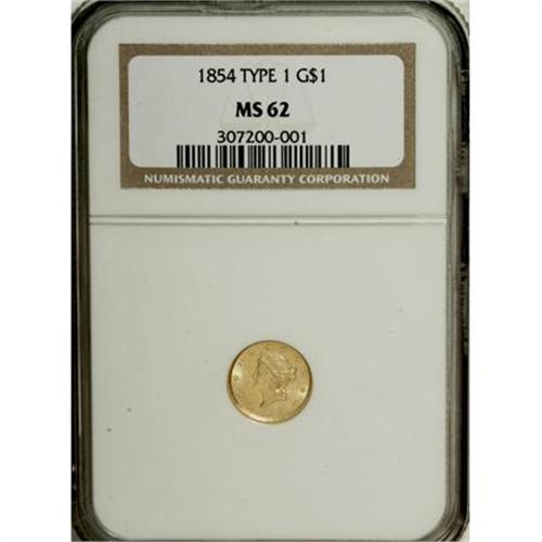 1854 G$1 Type One MS62 NGC. NGC Census: (947/731).