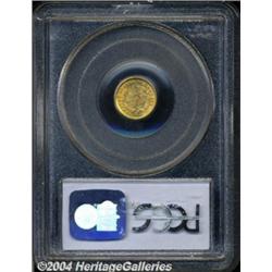 <table><tr><td><table><tr><td>1854 G$1 Type One MS63 PCGS. The last year for the Type One design. This example has excellent luster and a bold strike with only a few scattered marks. Bright orange-golden color graces each side. <BR><BR><B>Important notice:</B> Heritage usually auctions material at the rate of 200-250 lots per hour. On some occasions eBay Live bid software or the Internet may not be able to keep up with the pace of the auction. We recommend placing a realistic absentee bid now as insurance to avoid disappointment. Occasionally the auctioneer may eliminate or reject an eBay Live bid, and the auctioneer may also reopen a lot after the close of the eBay live bidding (usually because we missed an audience bid), and may reject your bid even if it shows you as the winning bidder. By bidding via eBay Live, you agree that Heritage may award the lot to another bidder at its sole discretion under the circumstances described above or any other reasonable circumstances. Since eBay bids are not shown to us until we open the lot on the floor, we treat those bids just like floor bids. In most cases the floor responds before the eBay bid is presented to us, due to Internet lag time, so for consistency we have made it a policy that floor bids are always considered first over tie eBay live bids. Also please note that all Heritage lots purchased through eBay Live carry a 20% Buyer's Premium. Please make sure you read the Terms and Conditions before you bid. <BR><BR><B>IMPORTANT ANNOUNCEMENT ABOUT RESERVES:</B> Heritage now divulges all reserves on its web site 7 days before every auction. If you want to know whether the reserve on this lot has been met, and if not, what the reserve amount is, please visit this lot page on the HeritageCoin.com web site, or email: bid@HeritageGalleries.com </span></font></td></tr></table></td></tr></table>