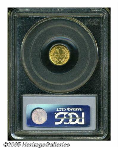 <B>1854<G$1> Type One MS64 PCGS.</B></I> An intricately struck and lustrous near-Gem that possesses the eye appeal of a finer grade. Pleasing yellow-gold surfaces display hints of underlying green, and are seemingly devoid of significant contact marks. Moderate mint-made clash marks on the reverse are typical of the era. Population: 113 in 64, 36 finer (6/05).