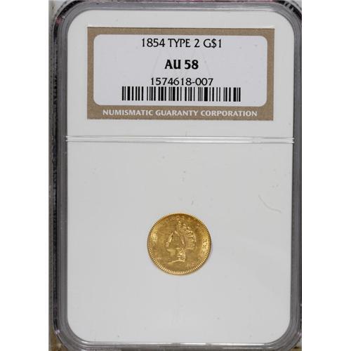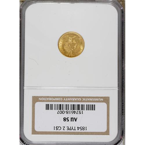 1854 G$1 Type Two AU58 NGC. In addition to the relativ