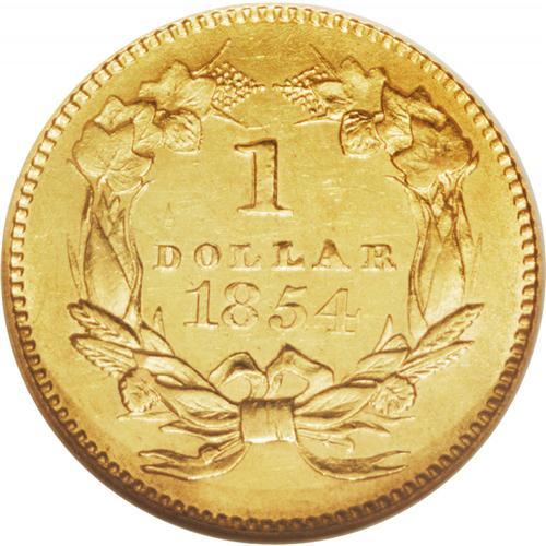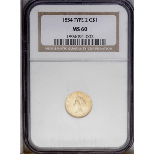 1854 G$1 Type Two MS60 NGC. The obverse of this coin w 1854[G$1] Type Two MS60 NGC.
