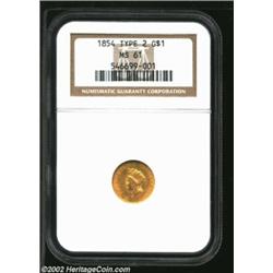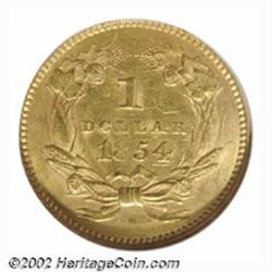 1854 G$1 Type Two MS61 NGC. An attractive representative of this conditionally challenging type, bot