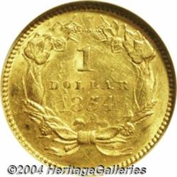 <table><tr><td><table><tr><td>1854 G$1 Type Two MS61 NGC. First year of a three-year type, and a very popular issue for type collectors, this piece has only slight softness in the centers, as seen on many Type Two gold dollars. The surfaces show some typical clash marks, but little of the characteristic striking softness so often seen. The luster is too subdued for a finer grade. <BR><BR><B>Important notice:</B> Heritage usually auctions material at the rate of 200-250 lots per hour. On some occasions eBay Live bid software or the Internet may not be able to keep up with the pace of the auction. We recommend placing a realistic absentee bid now as insurance to avoid disappointment. Occasionally the auctioneer may eliminate or reject an eBay Live bid, and the auctioneer may also reopen a lot after the close of the eBay live bidding (usually because we missed an audience bid), and may reject your bid even if it shows you as the winning bidder. By bidding via eBay Live, you agree that Heritage may award the lot to another bidder at its sole discretion under the circumstances described above or any other reasonable circumstances. Since eBay bids are not shown to us until we open the lot on the floor, we treat those bids just like floor bids. In most cases the floor responds before the eBay bid is presented to us, due to Internet lag time, so for consistency we have made it a policy that floor bids are always considered first over tie eBay live bids. Also please note that all Heritage lots purchased through eBay Live carry a 20% Buyer's Premium. Please make sure you read the Terms and Conditions before you bid. <BR><BR><B>IMPORTANT ANNOUNCEMENT ABOUT RESERVES:</B> Heritage now divulges all reserves on its web site 7 days before every auction. If you want to know whether the reserve on this lot has been met, and if not, what the reserve amount is, please visit this lot page on the HeritageCoin.com web site, or email: bid@HeritageGalleries.com </span></font></td></tr></table></td></tr></table>