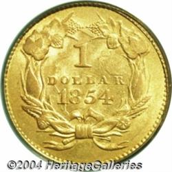 <table><tr><td><table><tr><td>1854 G$1 Type Two MS61 PCGS. Original dusky gray-golden surfaces, the clash marks in the fields are the most obvious ripple in the surface of this lovely Mint State coin. Exceptionally well defined for the type with complete definition on the date and denomination in the center of the reverse. <BR><BR><B>Important notice:</B> Heritage usually auctions material at the rate of 200-250 lots per hour. On some occasions eBay Live bid software or the Internet may not be able to keep up with the pace of the auction. We recommend placing a realistic absentee bid now as insurance to avoid disappointment. Occasionally the auctioneer may eliminate or reject an eBay Live bid, and the auctioneer may also reopen a lot after the close of the eBay live bidding (usually because we missed an audience bid), and may reject your bid even if it shows you as the winning bidder. By bidding via eBay Live, you agree that Heritage may award the lot to another bidder at its sole discretion under the circumstances described above or any other reasonable circumstances. Since eBay bids are not shown to us until we open the lot on the floor, we treat those bids just like floor bids. In most cases the floor responds before the eBay bid is presented to us, due to Internet lag time, so for consistency we have made it a policy that floor bids are always considered first over tie eBay live bids. Also please note that all Heritage lots purchased through eBay Live carry a 20% Buyer's Premium. Please make sure you read the Terms and Conditions before you bid. <BR><BR><B>IMPORTANT ANNOUNCEMENT ABOUT RESERVES:</B> Heritage now divulges all reserves on its web site 7 days before every auction. If you want to know whether the reserve on this lot has been met, and if not, what the reserve amount is, please visit this lot page on the HeritageCoin.com web site, or email: bid@HeritageGalleries.com </span></font></td></tr></table></td></tr></table>