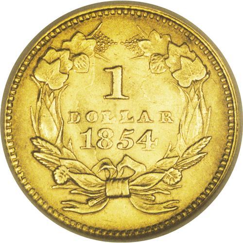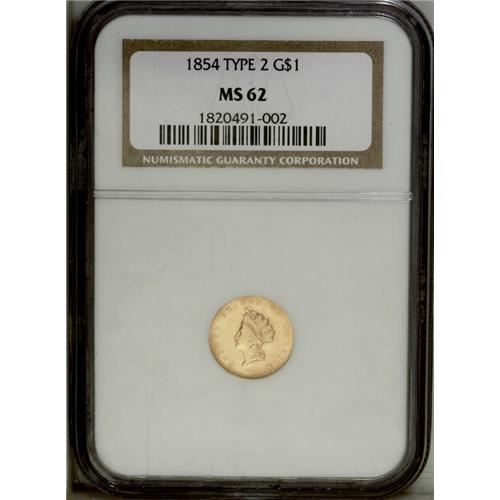 1854 G$1 Type Two MS62 NGC. Breen-6037, "Extremely Rar