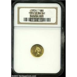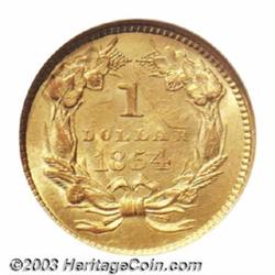 <table><tr><td><TABLE cellSpacing=0 cellPadding=0 width="100%" bgColor=#000000 border=0><TBODY> <TR><TD width="100%"><TABLE cellSpacing=1 cellPadding=3 width="100%" border=0><TBODY><TR><TD width="100%" bgColor=#79735c><FONT face=arial color=#ffffff size=3><B>Description</B> </FONT></TD></TR><TR><TD width="100%" bgColor=#ffffff><FONT face=arial size=2><B>1854 G$1 Type Two MS62 NGC.</B></I> Both sides are attractively toned in yellow-gold shades that confirm this coin's originality. This is a well struck example, although the often-seen clashmarks (as struck) are noted in the fields on both sides. We cannot, however, report any abrasions that are out of context with the assigned grade. Mint State representatives of the 1854-1856 Type Two Gold Dollar always perform well at auction, due to their popularity with type collectors. </FONT></TD></TR></TBODY></TABLE></TD></TR></TBODY></TABLE><BR><A name=PricesRealized></A><TABLE cellSpacing=0 cellPadding=0 width="100%" bgColor=#000000 border=0><TBODY><TR><TD width="100%"><TABLE cellSpacing=1 cellPadding=3 width="100%" border=0><TBODY><TR><TD width="100%" bgColor=#79735c><A name=PR><FONT face=arial color=#ffffff size=3><B>Previous Prices from Heritage Auctions</B> </FONT></A></TD></TR><TR><TD bgColor=#f6f6ed><TABLE cellSpacing=0 cellPadding=0 width="100%" border=1><TBODY><TR><TD align=middle width="33%"><B>Date</B></TD><TD align=middle width="33%"><B>Service</B></TD><TD align=middle width="33%"><B>Price</B></TD></TR><TR bgColor=whitesmoke><TD width="33%"><B>01/14/2003</B></TD><TD width="33%">PCGS</TD><TD width="33%">$4,600.00</TD></TR><TR bgColor=whitesmoke><TD width="33%"><B>07/09/2002</B></TD><TD width="33%">NGC</TD><TD width="33%">$4,715.00</TD></TR><TR bgColor=whitesmoke><TD width="33%"><B>09/20/2003</B></TD><TD width="33%">PCGS</TD><TD width="33%">$5,290.00</TD></TR><TR bgColor=whitesmoke><TD width="33%"><B>05/03/2003</B></TD><TD width="33%">PCGS</TD><TD width="33%">$4,715.00</TD></TR><TR bgColor=whitesmoke><TD width="33%"><B>11/23/2002</B></TD><TD width="33%">PCGS</TD><TD width="33%">$4,600.00</TD></TR><TR bgColor=whitesmoke><TD width="33%"><B>11/23/2002</B></TD><TD width="33%">PCGS</TD><TD width="33%">$6,900.00</TD></TR><TR bgColor=whitesmoke><TD width="33%"><B>09/28/2002</B></TD><TD width="33%">NGC</TD><TD width="33%">$4,887.50</TD></TR><TR bgColor=whitesmoke><TD width="33%"><B>04/27/2002</B></TD><TD width="33%">NGC</TD><TD width="33%">$4,715.00</TD></TR><TR bgColor=whitesmoke><TD width="33%"><B>01/05/2001</B></TD><TD width="33%">PCGS</TD><TD width="33%">$4,485.00</TD></TR><TR bgColor=whitesmoke><TD width="33%"><B>03/02/2000</B></TD><TD width="33%">PCGS</TD><TD width="33%">$5,865.00</TD></TR><TR bgColor=whitesmoke><TD width="33%"><B>01/07/2000</B></TD><TD width="33%">NGC</TD><TD width="33%">$5,405.00</TD></TR><TR bgColor=whitesmoke><TD width="33%"><B>02/12/1999</B></TD><TD width="33%">NGC</TD><TD width="33%">$5,750.00</TD></TR><TR bgColor=whitesmoke><TD width="33%"><B>02/12/1999</B></TD><TD width="33%">PCGS</TD><TD width="33%">$6,095.00</TD></TR><TR bgColor=whitesmoke><TD width="33%"><B>01/08/1999</B></TD><TD width="33%">PCGS</TD><TD width="33%">$11,500.00</TD></TR><TR bgColor=whitesmoke><TD width="33%"><B>09/26/1998</B></TD><TD width="33%">NGC</TD><TD width="33%">$10,350.00</TD></TR><TR bgColor=whitesmoke><TD width="33%"><B>08/07/1998</B></TD><TD width="33%">PCGS</TD><TD width="33%">$6,210.00</TD></TR><TR bgColor=whitesmoke><TD width="33%"><B>01/10/1998</B></TD><TD width="33%">PCGS</TD><TD width="33%">$5,290.00</TD></TR><TR bgColor=whitesmoke><TD width="33%"><B>01/07/1998</B></TD><TD width="33%">NGC</TD><TD width="33%">$5,225.00</TD></TR><TR bgColor=whitesmoke><TD width="33%"><B>07/29/1997</B></TD><TD width="33%">PCGS</TD><TD width="33%">$6,050.00</TD></TR><TR bgColor=whitesmoke><TD width="33%"><B>03/04/1995</B></TD><TD width="33%">PCGS</TD><TD width="33%">$3,300.00</TD></TR><TR bgColor=whitesmoke><TD width="33%"><B>04/08/1994</B></TD><TD width="33%">PCGS</TD><TD width="33%">$4,290.00</TD></TR><TR bgColor=whitesmoke><TD width="33%"><B>03/01/2000</B></TD><TD width="33%">PCGS</TD><TD width="33%">$6,900.00</TD></TR><TR bgColor=whitesmoke><TD width="33%"><B>11/01/1997</B></TD><TD width="33%">PCGS</TD><TD width="33%">$8,525.00</TD></TR><TR bgColor=whitesmoke><TD width="33%"><B>03/01/1992</B></TD><TD width="33%">PCGS</TD><TD width="33%">$7,425.00</TD></TR><TR bgColor=whitesmoke><TD width="33%"><B>08/01/1999</B></TD><TD width="33%">PCGS</TD><TD width="33%">$7,130.00</TD></TR><TR bgColor=whitesmoke><TD width="33%"><B>05/01/1999</B></TD><TD width="33%">PCGS</TD><TD width="33%">$6,612.00</TD></TR><TR bgColor=whitesmoke><TD width="33%"><B>02/01/1999</B></TD><TD width="33%">PCGS</TD><TD width="33%">$6,105.00</TD></TR><TR bgColor=whitesmoke><TD width="33%"><B>02/01/1999</B></TD><TD width="33%">PCGS</TD><TD width="33%">$6,613.00</TD></TR><TR bgColor=whitesmoke><TD width="33%"><B>10/02/2000</B></TD><TD width="33%">PCGS</TD><TD width="33%">$6,900.00</TD></TR><TR bgColor=whitesmoke><TD width="33%"><B>03/01/2001</B></TD><TD width="33%">PCGS</TD><TD width="33%">$4,865.00</TD></TR><TR bgColor=whitesmoke><TD width="33%"><B>10/02/2000</B></TD><TD width="33%">NGC</TD><TD width="33%">$4,830.00</TD></TR><TR bgColor=whitesmoke><TD width="33%"><B>10/01/1990</B></TD><TD width="33%">PCGS</TD><TD width="33%">$5,500.00</TD></TR><TR bgColor=whitesmoke><TD width="33%"><B>02/01/1991</B></TD><TD width="33%">PCGS</TD><TD width="33%">$5,500.00</TD></TR><TR bgColor=whitesmoke><TD width="33%"><B>11/01/1995</B></TD><TD width="33%">PCGS</TD><TD width="33%">$4,400.00</TD></TR><TR bgColor=whitesmoke><TD width="33%"><B>01/01/1996</B></TD><TD width="33%">PCGS</TD><TD width="33%">$3,905.00</TD></TR><TR bgColor=whitesmoke><TD width="33%"><B>05/01/1995</B></TD><TD width="33%">PCGS</TD><TD width="33%">$3,740.00</TD></TR><TR bgColor=whitesmoke><TD width="33%"><B>10/01/1995</B></TD><TD width="33%">PCGS</TD><TD width="33%">$3,740.00</TD></TR><TR bgColor=whitesmoke><TD width="33%"><B>08/01/1