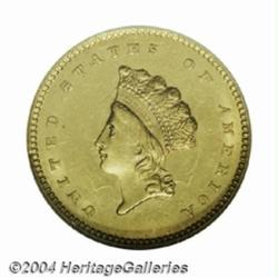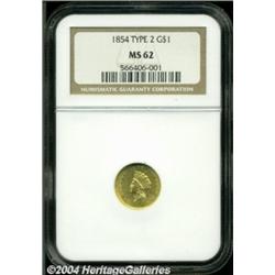 <table><tbody><tr><td><table> <TR><TD width="100%"><TABLE cellSpacing=1 cellPadding=3 width="100%" border=0><TBODY><TR><TD width="100%" bgColor=#79735c><FONT face=arial color=#ffffff size=3><B>Description</B> </FONT></TD></TR><TR><TD width="100%" bgColor=#ffffff><FONT face=arial size=2><B>1854 G$1 Type Two MS62 NGC.</B></I> A near-Select quality Type Two Gold Dollar, both sides are above average in striking definition with only minimal softness of detail over the central obverse highpoint. The green-gold surfaces exhibit a couple of scattered abrasions, uncommonly minimal for the assigned grade, but we do note that the often-seen clashmarks are present in the fields around the central devices. </FONT></TD></TR></TBODY></TABLE></TD></TR></TBODY></TABLE><BR><A name=PricesRealized></A><TABLE cellSpacing=0 cellPadding=0 width="100%" bgColor=#000000 border=0><TBODY><TR><TD width="100%"><TABLE cellSpacing=1 cellPadding=3 width="100%" border=0><TBODY><TR><TD width="100%" bgColor=#79735c><A name=PR><FONT face=arial color=#ffffff size=3><B>Previous Prices from Heritage Auctions</B> </FONT></A></TD></TR><TR><TD bgColor=#f6f6ed><TABLE cellSpacing=0 cellPadding=0 width="100%" border=1><TBODY><TR><TD align=middle width="33%"><B>Date</B></TD><TD align=middle width="33%"><B>Service</B></TD><TD align=middle width="33%"><B>Price</B></TD></TR><TR bgColor=whitesmoke><TD width="33%"><B>01/14/2003</B></TD><TD width="33%">PCGS</TD><TD width="33%">$4,600.00</TD></TR><TR bgColor=whitesmoke><TD width="33%"><B>07/09/2002</B></TD><TD width="33%">NGC</TD><TD width="33%">$4,715.00</TD></TR><TR bgColor=whitesmoke><TD width="33%"><B>01/07/2004</B></TD><TD width="33%">PCGS</TD><TD width="33%">$5,405.00</TD></TR><TR bgColor=whitesmoke><TD width="33%"><B>01/07/2004</B></TD><TD width="33%">PCGS</TD><TD width="33%">$5,750.00</TD></TR><TR bgColor=whitesmoke><TD width="33%"><B>11/07/2003</B></TD><TD width="33%">PCGS</TD><TD width="33%">$6,210.00</TD></TR><TR bgColor=whitesmoke><TD width="33%"><B>11/07/2003</B></TD><TD width="33%">NGC</TD><TD width="33%">$5,520.00</TD></TR><TR bgColor=whitesmoke><TD width="33%"><B>09/20/2003</B></TD><TD width="33%">PCGS</TD><TD width="33%">$5,290.00</TD></TR><TR bgColor=whitesmoke><TD width="33%"><B>05/03/2003</B></TD><TD width="33%">PCGS</TD><TD width="33%">$4,715.00</TD></TR><TR bgColor=whitesmoke><TD width="33%"><B>11/23/2002</B></TD><TD width="33%">PCGS</TD><TD width="33%">$4,600.00</TD></TR><TR bgColor=whitesmoke><TD width="33%"><B>11/23/2002</B></TD><TD width="33%">PCGS</TD><TD width="33%">$6,900.00</TD></TR><TR bgColor=whitesmoke><TD width="33%"><B>09/28/2002</B></TD><TD width="33%">NGC</TD><TD width="33%">$4,887.50</TD></TR><TR bgColor=whitesmoke><TD width="33%"><B>04/27/2002</B></TD><TD width="33%">NGC</TD><TD width="33%">$4,715.00</TD></TR><TR bgColor=whitesmoke><TD width="33%"><B>01/05/2001</B></TD><TD width="33%">PCGS</TD><TD width="33%">$4,485.00</TD></TR><TR bgColor=whitesmoke><TD width="33%"><B>03/02/2000</B></TD><TD width="33%">PCGS</TD><TD width="33%">$5,865.00</TD></TR><TR bgColor=whitesmoke><TD width="33%"><B>01/07/2000</B></TD><TD width="33%">NGC</TD><TD width="33%">$5,405.00</TD></TR><TR bgColor=whitesmoke><TD width="33%"><B>02/12/1999</B></TD><TD width="33%">NGC</TD><TD width="33%">$5,750.00</TD></TR><TR bgColor=whitesmoke><TD width="33%"><B>02/12/1999</B></TD><TD width="33%">PCGS</TD><TD width="33%">$6,095.00</TD></TR><TR bgColor=whitesmoke><TD width="33%"><B>01/08/1999</B></TD><TD width="33%">PCGS</TD><TD width="33%">$11,500.00</TD></TR><TR bgColor=whitesmoke><TD width="33%"><B>09/26/1998</B></TD><TD width="33%">NGC</TD><TD width="33%">$10,350.00</TD></TR><TR bgColor=whitesmoke><TD width="33%"><B>08/07/1998</B></TD><TD width="33%">PCGS</TD><TD width="33%">$6,210.00</TD></TR><TR bgColor=whitesmoke><TD width="33%"><B>01/10/1998</B></TD><TD width="33%">PCGS</TD><TD width="33%">$5,290.00</TD></TR><TR bgColor=whitesmoke><TD width="33%"><B>01/07/1998</B></TD><TD width="33%">NGC</TD><TD width="33%">$5,225.00</TD></TR><TR bgColor=whitesmoke><TD width="33%"><B>07/29/1997</B></TD><TD width="33%">PCGS</TD><TD width="33%">$6,050.00</TD></TR><TR bgColor=whitesmoke><TD width="33%"><B>03/04/1995</B></TD><TD width="33%">PCGS</TD><TD width="33%">$3,300.00</TD></TR><TR bgColor=whitesmoke><TD width="33%"><B>04/08/1994</B></TD><TD width="33%">PCGS</TD><TD width="33%">$4,290.00</TD></TR><TR bgColor=whitesmoke><TD width="33%"><B>03/01/2000</B></TD><TD width="33%">PCGS</TD><TD width="33%">$6,900.00</TD></TR><TR bgColor=whitesmoke><TD width="33%"><B>11/01/1997</B></TD><TD width="33%">PCGS</TD><TD width="33%">$8,525.00</TD></TR><TR bgColor=whitesmoke><TD width="33%"><B>03/01/1992</B></TD><TD width="33%">PCGS</TD><TD width="33%">$7,425.00</TD></TR><TR bgColor=whitesmoke><TD width="33%"><B>08/01/1999</B></TD><TD width="33%">PCGS</TD><TD width="33%">$7,130.00</TD></TR><TR bgColor=whitesmoke><TD width="33%"><B>05/01/1999</B></TD><TD width="33%">PCGS</TD><TD width="33%">$6,612.00</TD></TR><TR bgColor=whitesmoke><TD width="33%"><B>02/01/1999</B></TD><TD width="33%">PCGS</TD><TD width="33%">$6,105.00</TD></TR><TR bgColor=whitesmoke><TD width="33%"><B>02/01/1999</B></TD><TD width="33%">PCGS</TD><TD width="33%">$6,613.00</TD></TR><TR bgColor=whitesmoke><TD width="33%"><B>10/02/2000</B></TD><TD width="33%">PCGS</TD><TD width="33%">$6,900.00</TD></TR><TR bgColor=whitesmoke><TD width="33%"><B>03/01/2001</B></TD><TD width="33%">PCGS</TD><TD width="33%">$4,865.00</TD></TR><TR bgColor=whitesmoke><TD width="33%"><B>10/02/2000</B></TD><TD width="33%">NGC</TD><TD width="33%">$4,830.00</TD></TR><TR bgColor=whitesmoke><TD width="33%"><B>10/01/1990</B></TD><TD width="33%">PCGS</TD><TD width="33%">$5,500.00</TD></TR><TR bgColor=whitesmoke><TD width="33%"><B>02/01/1991</B></TD><TD width="33%">PCGS</TD><TD width="33%">$5,500.00</TD></TR><TR bgColor=whitesmoke><TD width="33%"><B>11/01/1995</B></TD><TD width="33%">PCGS</TD><TD width="33%">$4,400.00</TD></TR><TR bgColor=whitesmoke><TD width="33%"><B>01/01/1996</B></TD><