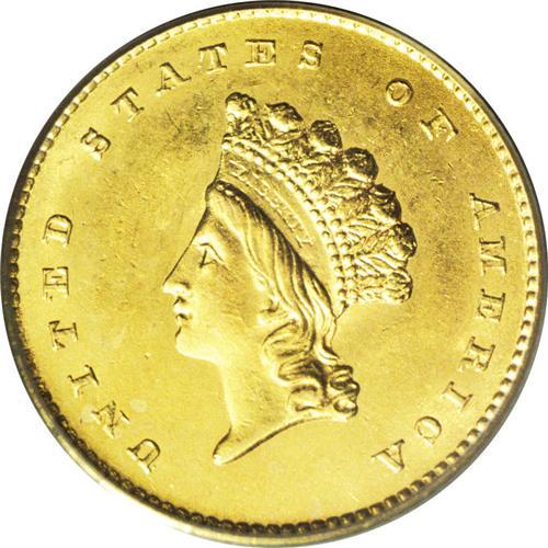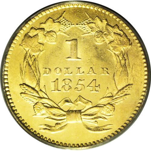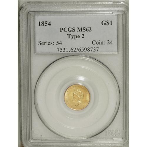 1854 G$1 Type Two MS62 PCGS. A bright, orange-gold exa