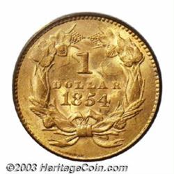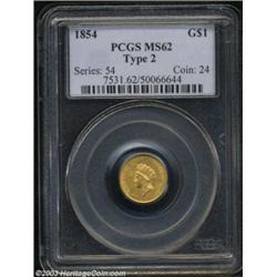<table><tr><td><TABLE cellSpacing=0 cellPadding=0 width="100%" bgColor=#000000 border=0><TBODY> <TR><TD width="100%"><TABLE cellSpacing=1 cellPadding=3 width="100%" border=0><TBODY><TR><TD width="100%" bgColor=#79735c><FONT face=arial color=#ffffff size=3><B>Description</B> </FONT></TD></TR><TR><TD width="100%" bgColor=#ffffff><FONT face=arial size=2><B>1854 G$1 Type Two MS62 PCGS.</B></I> The eye appeal is superior to that often encountered on P-mint Gold Dollars of this type. For starters, the surfaces are devoid of wear with an otherwise bold strike that wanes only slightly at the center of the obverse. The luster is vibrant, and the color is a thick, rich, yellow-gold shade that comes close to dominating the outward appearance. Minimally abraded for the assigned grade. </FONT></TD></TR></TBODY></TABLE></TD></TR></TBODY></TABLE><BR><A name=PricesRealized></A><TABLE cellSpacing=0 cellPadding=0 width="100%" bgColor=#000000 border=0><TBODY><TR><TD width="100%"><TABLE cellSpacing=1 cellPadding=3 width="100%" border=0><TBODY><TR><TD width="100%" bgColor=#79735c><A name=PR><FONT face=arial color=#ffffff size=3><B>Previous Prices from Heritage Auctions</B> </FONT></A></TD></TR><TR><TD bgColor=#f6f6ed><TABLE cellSpacing=0 cellPadding=0 width="100%" border=1><TBODY><TR><TD align=middle width="33%"><B>Date</B></TD><TD align=middle width="33%"><B>Service</B></TD><TD align=middle width="33%"><B>Price</B></TD></TR><TR bgColor=whitesmoke><TD width="33%"><B>01/14/2003</B></TD><TD width="33%">PCGS</TD><TD width="33%">$4,600.00</TD></TR><TR bgColor=whitesmoke><TD width="33%"><B>07/09/2002</B></TD><TD width="33%">NGC</TD><TD width="33%">$4,715.00</TD></TR><TR bgColor=whitesmoke><TD width="33%"><B>09/20/2003</B></TD><TD width="33%">PCGS</TD><TD width="33%">$5,290.00</TD></TR><TR bgColor=whitesmoke><TD width="33%"><B>05/03/2003</B></TD><TD width="33%">PCGS</TD><TD width="33%">$4,715.00</TD></TR><TR bgColor=whitesmoke><TD width="33%"><B>11/23/2002</B></TD><TD width="33%">PCGS</TD><TD width="33%">$4,600.00</TD></TR><TR bgColor=whitesmoke><TD width="33%"><B>11/23/2002</B></TD><TD width="33%">PCGS</TD><TD width="33%">$6,900.00</TD></TR><TR bgColor=whitesmoke><TD width="33%"><B>09/28/2002</B></TD><TD width="33%">NGC</TD><TD width="33%">$4,887.50</TD></TR><TR bgColor=whitesmoke><TD width="33%"><B>04/27/2002</B></TD><TD width="33%">NGC</TD><TD width="33%">$4,715.00</TD></TR><TR bgColor=whitesmoke><TD width="33%"><B>01/05/2001</B></TD><TD width="33%">PCGS</TD><TD width="33%">$4,485.00</TD></TR><TR bgColor=whitesmoke><TD width="33%"><B>03/02/2000</B></TD><TD width="33%">PCGS</TD><TD width="33%">$5,865.00</TD></TR><TR bgColor=whitesmoke><TD width="33%"><B>01/07/2000</B></TD><TD width="33%">NGC</TD><TD width="33%">$5,405.00</TD></TR><TR bgColor=whitesmoke><TD width="33%"><B>02/12/1999</B></TD><TD width="33%">NGC</TD><TD width="33%">$5,750.00</TD></TR><TR bgColor=whitesmoke><TD width="33%"><B>02/12/1999</B></TD><TD width="33%">PCGS</TD><TD width="33%">$6,095.00</TD></TR><TR bgColor=whitesmoke><TD width="33%"><B>01/08/1999</B></TD><TD width="33%">PCGS</TD><TD width="33%">$11,500.00</TD></TR><TR bgColor=whitesmoke><TD width="33%"><B>09/26/1998</B></TD><TD width="33%">NGC</TD><TD width="33%">$10,350.00</TD></TR><TR bgColor=whitesmoke><TD width="33%"><B>08/07/1998</B></TD><TD width="33%">PCGS</TD><TD width="33%">$6,210.00</TD></TR><TR bgColor=whitesmoke><TD width="33%"><B>01/10/1998</B></TD><TD width="33%">PCGS</TD><TD width="33%">$5,290.00</TD></TR><TR bgColor=whitesmoke><TD width="33%"><B>01/07/1998</B></TD><TD width="33%">NGC</TD><TD width="33%">$5,225.00</TD></TR><TR bgColor=whitesmoke><TD width="33%"><B>07/29/1997</B></TD><TD width="33%">PCGS</TD><TD width="33%">$6,050.00</TD></TR><TR bgColor=whitesmoke><TD width="33%"><B>03/04/1995</B></TD><TD width="33%">PCGS</TD><TD width="33%">$3,300.00</TD></TR><TR bgColor=whitesmoke><TD width="33%"><B>04/08/1994</B></TD><TD width="33%">PCGS</TD><TD width="33%">$4,290.00</TD></TR><TR bgColor=whitesmoke><TD width="33%"><B>03/01/2000</B></TD><TD width="33%">PCGS</TD><TD width="33%">$6,900.00</TD></TR><TR bgColor=whitesmoke><TD width="33%"><B>11/01/1997</B></TD><TD width="33%">PCGS</TD><TD width="33%">$8,525.00</TD></TR><TR bgColor=whitesmoke><TD width="33%"><B>03/01/1992</B></TD><TD width="33%">PCGS</TD><TD width="33%">$7,425.00</TD></TR><TR bgColor=whitesmoke><TD width="33%"><B>08/01/1999</B></TD><TD width="33%">PCGS</TD><TD width="33%">$7,130.00</TD></TR><TR bgColor=whitesmoke><TD width="33%"><B>05/01/1999</B></TD><TD width="33%">PCGS</TD><TD width="33%">$6,612.00</TD></TR><TR bgColor=whitesmoke><TD width="33%"><B>02/01/1999</B></TD><TD width="33%">PCGS</TD><TD width="33%">$6,105.00</TD></TR><TR bgColor=whitesmoke><TD width="33%"><B>02/01/1999</B></TD><TD width="33%">PCGS</TD><TD width="33%">$6,613.00</TD></TR><TR bgColor=whitesmoke><TD width="33%"><B>10/02/2000</B></TD><TD width="33%">PCGS</TD><TD width="33%">$6,900.00</TD></TR><TR bgColor=whitesmoke><TD width="33%"><B>03/01/2001</B></TD><TD width="33%">PCGS</TD><TD width="33%">$4,865.00</TD></TR><TR bgColor=whitesmoke><TD width="33%"><B>10/02/2000</B></TD><TD width="33%">NGC</TD><TD width="33%">$4,830.00</TD></TR><TR bgColor=whitesmoke><TD width="33%"><B>10/01/1990</B></TD><TD width="33%">PCGS</TD><TD width="33%">$5,500.00</TD></TR><TR bgColor=whitesmoke><TD width="33%"><B>02/01/1991</B></TD><TD width="33%">PCGS</TD><TD width="33%">$5,500.00</TD></TR><TR bgColor=whitesmoke><TD width="33%"><B>11/01/1995</B></TD><TD width="33%">PCGS</TD><TD width="33%">$4,400.00</TD></TR><TR bgColor=whitesmoke><TD width="33%"><B>01/01/1996</B></TD><TD width="33%">PCGS</TD><TD width="33%">$3,905.00</TD></TR><TR bgColor=whitesmoke><TD width="33%"><B>05/01/1995</B></TD><TD width="33%">PCGS</TD><TD width="33%">$3,740.00</TD></TR><TR bgColor=whitesmoke><TD width="33%"><B>10/01/1995</B></TD><TD width="33%">PCGS</TD><TD width="33%">$3,740.00</TD></TR><TR bgColor=whitesmoke><TD width="33%"><B>08/01/1991</B></TD><TD width="33%">PCGS</TD><TD width="33%"