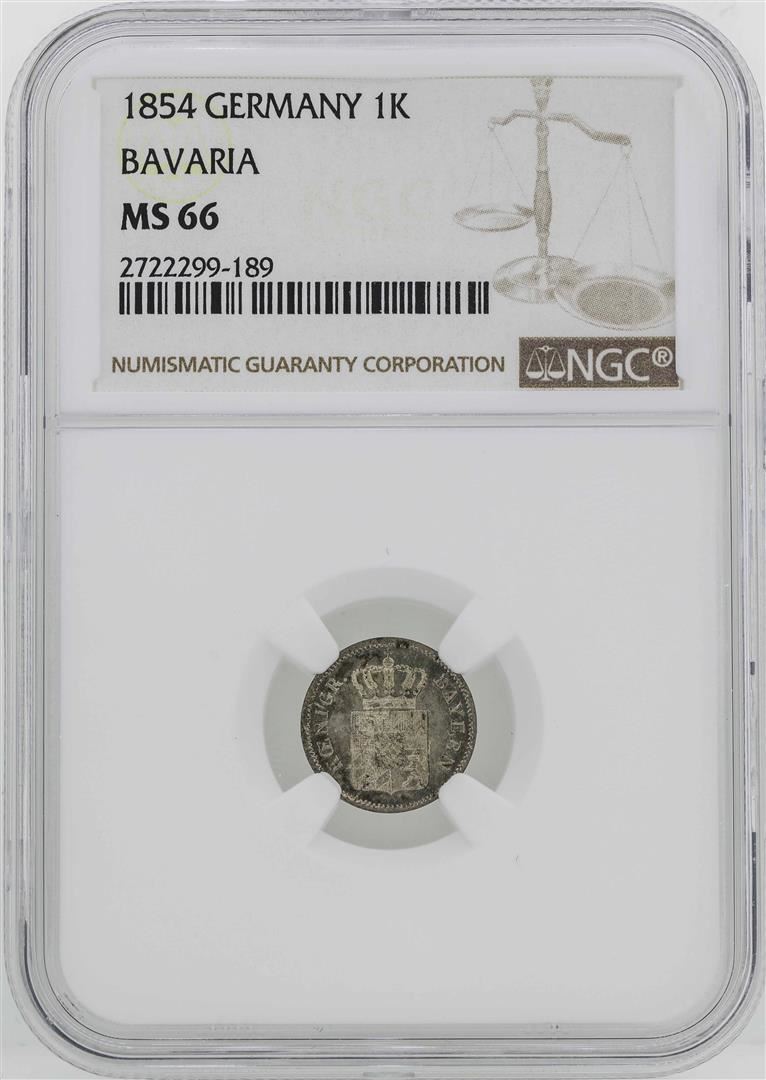 One 1854 Germany Bavaria Kreuzer Coin NGC MS66. NGC Certified.