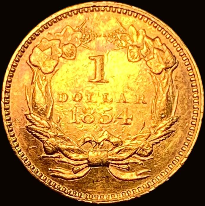 1854 Gold $1 Indian Princess Type 2 CLOSELY UNCIRCULATED