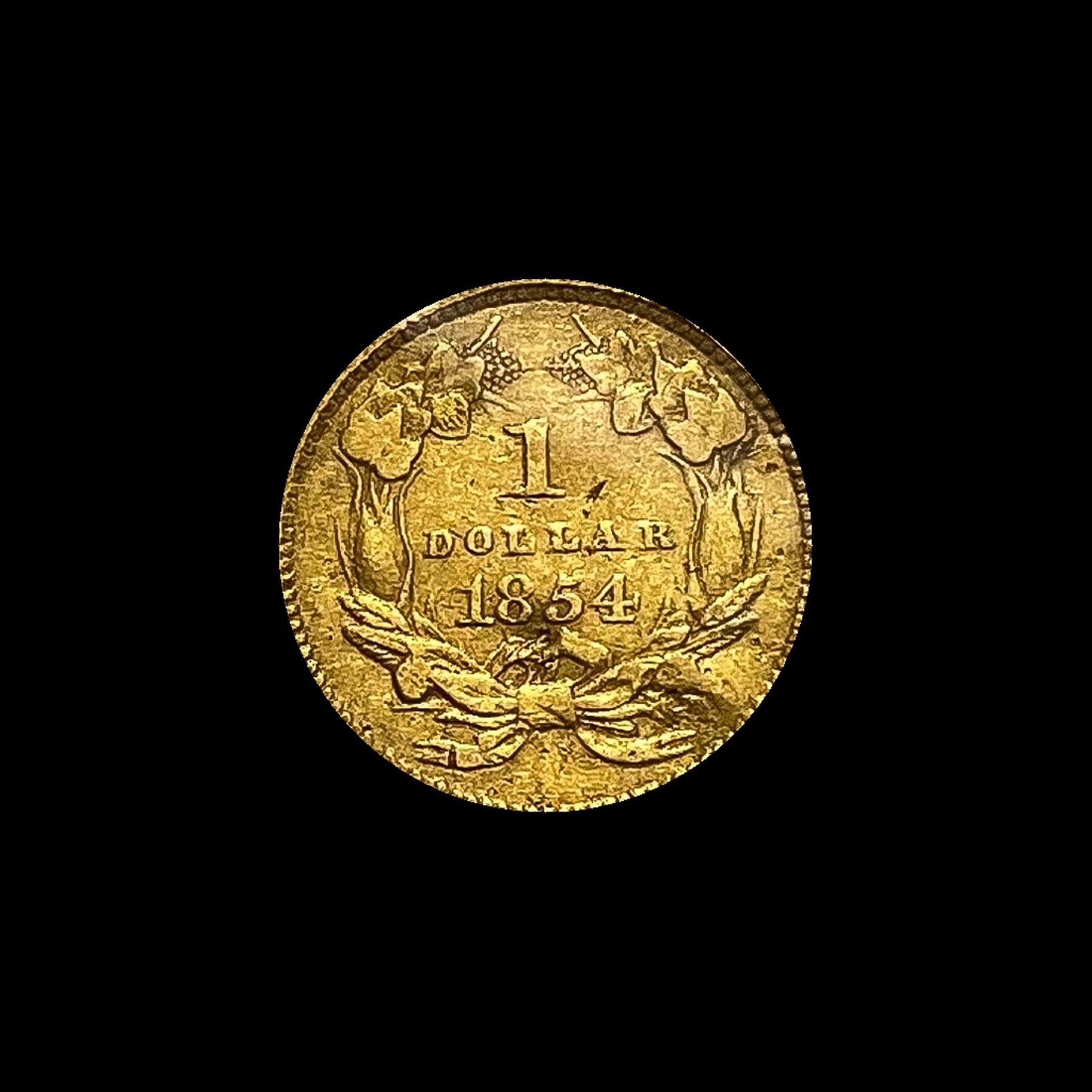 1854 Gold $1 Indian Head Type 2 NICELY CIRCULATED