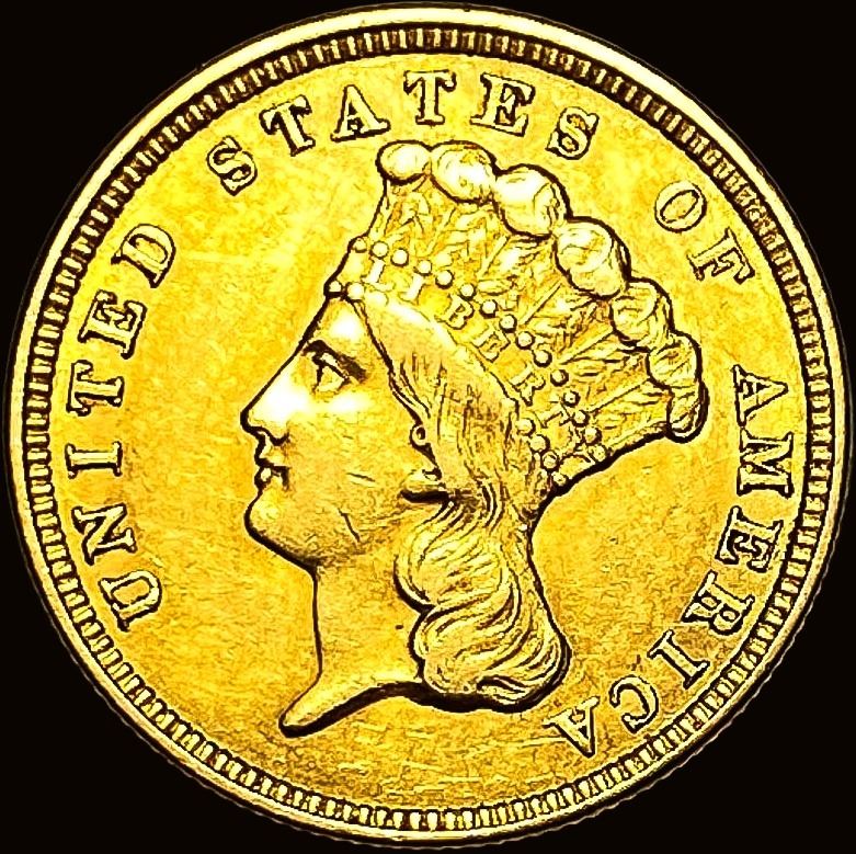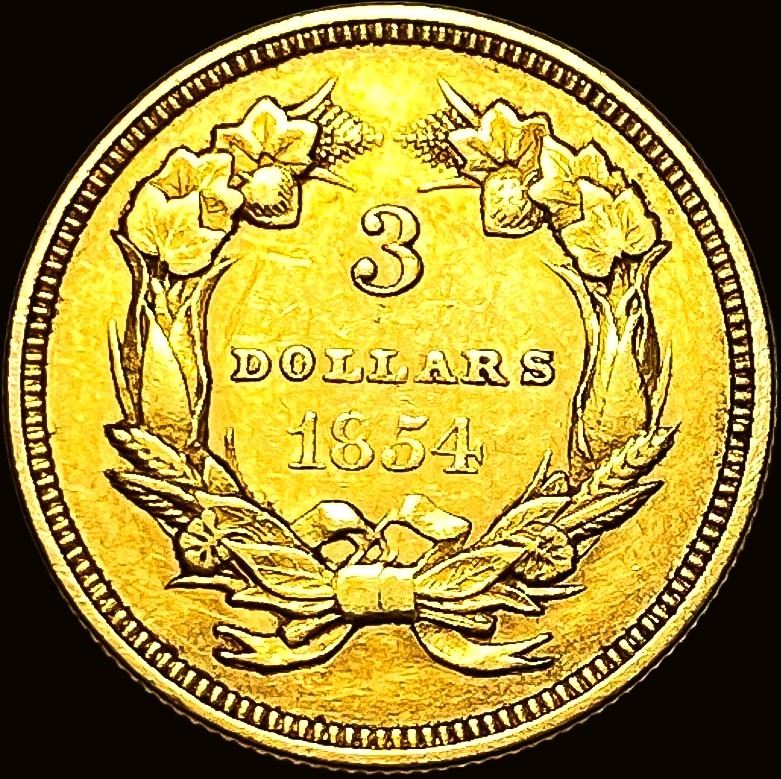 1854 Gold $3 Indian Princess Head ABOUT UNCIRCULATED