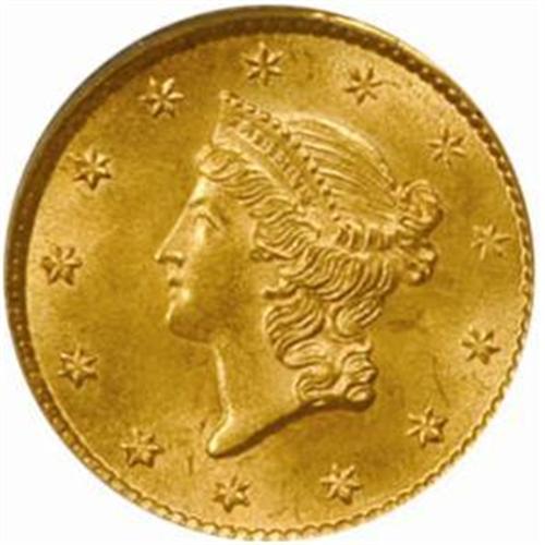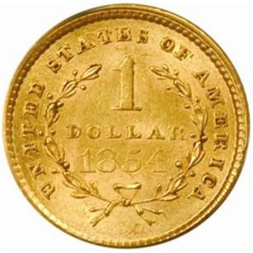 <style type="text/css"> body, td, th { font-family: Arial, Helvetica, sans-serif; font-size: 12px; color: #482424; margin: 0px; padding: 0px; } #header { background-image: url(http://www.bowersandmerena.com/ebay/images/template_v3_01.gif); clear: both; background-color: #590303; border-top-width: 2px; border-top-style: solid; border-top-color: #B38C4F;}#header #header_wrapper { height: 75px; clear: both; width: 800px; margin-right: auto; margin-left: auto; background-image: url(http://www.bowersandmerena.com/ebay/images/template_v3_03.gif); background-repeat: no-repeat; background-position: right; color: #F3EDCC;}#header #header_wrapper #header_logo { float: left; height: 75px; width: 444px; background-image: url(http://www.bowersandmerena.com/ebay/images/template_v3_02.gif); background-repeat: no-repeat; font-size: 10px; text-transform: capitalize; color: #B38C4F;}#header #header_wrapper #header_right { float: left; height: 75px; width: 356px; text-align: right;}#header #header_wrapper #header_right #headerLoginBtn { margin-bottom: 30px;}#header #header_wrapper #header_right input#txtSearch { color: #B49056; border: 1px solid #B49056; width: 175px; padding-top: 3px; padding-right: 3px; padding-bottom: 4px; padding-left: 3px;}#nav { height: 37px; background-image: url(http://www.bowersandmerena.com/ebay/images/template_v3_05.gif); clear: both;}#nav #nav_wrapper { height: 35px; width: 800px; margin-right: auto; margin-left: auto; border-left-width: 1px; border-left-style: solid; border-left-color: #B38C4F;}#nav #nav_wrapper a { padding-right: 15px; padding-left: 15px; border-right-width: 1px; border-right-style: solid; border-right-color: #B38C4F; height: 25px; padding-top: 10px; display: block; float: left; text-decoration: none; font-weight: bold; color: #5D0303;}#nav #nav_wrapper a:hover { color: #B38C4F;}#nav #nav_wrapper #search { float: right; padding-top: 7px;}#nav #nav_wrapper #search #txtSearch { font-family: Arial, Helvetica, sans-serif; font-size: 10px; text-transform: uppercase; color: #D2AE75; border: 1px solid #B38C4F; padding: 3px;}#content_bgd { background-image: url(http://www.bowersandmerena.com/ebay/images/template_v3_09.gif); background-repeat: repeat-y; background-position: center; padding-top: 15px; padding-bottom: 15px; background-color: #FBFBDB;}#content_wrapper { clear: both; height: auto; width: 800px; margin-right: auto; margin-left: auto;}.LotDetailWhite{ line-height:normal; font-size:13px; font-family: arial,helvetica,sans-serif; color: White; font-weight: bold;}.LotDetailInformation{ line-height:normal; font-size: 13px; font-family: arial,helvetica,sans-serif;}.LotDetailMessage{ line-height:normal; font-size: 13px; font-family: arial,helvetica,sans-serif; color: red;}}tr.HeaderAuctionTitle td { color: #000000; font-weight: bold; padding: 2px; background-image: url(http://www.bowersandmerena.com/ebay/images/template_v3_05.gif); background-repeat: repeat-x; border-bottom-width: 1px; border-bottom-style: solid; border-bottom-color: #B38C4F;}table.AuctionSummary a, table.AuctionSummary a:link, table.AuctionSummary a:visited { color: #0000FF; text-decoration: none;}}td.tableHeaderLeft { border-left-width: 1px; border-left-style: solid; border-left-color: #B38C4F;}td.tableHeaderRight { border-right-width: 1px; border-right-style: solid; border-right-color: #B38C4F;}td.tableCellMiddle { border-left-width: 1px; border-left-style: solid; border-left-color: #B38C4F; border-right-width: 1px; border-right-style: solid; border-right-color: #B38C4F; padding: 5px;}tr.footer td { border-top-width: 1px; border-top-style: solid; border-top-color: #B38C4F;}</style></head><body><div id="header"> <div id="header_wrapper"> <div id="header_logo"> </div> <div id="header_right"> </div> </div></div><div id="nav"> <div id="nav_wrapper"> <a href="http://www.bowersandmerena.com">Our eBayLive Auctions</a> <a href="#PaymentInfo">Payment Information</a> <a href="#ShippingInfo">Shipping Information</a> <a href="#About">About Bowers and Merena</a> </div></div><div id="content_bgd"> <div id="content_wrapper"> <table width="100%" border="0" cellpadding="5" cellspacing="0" class="AuctionSummary"> <tbody> <tr class="HeaderAuctionTitle" style="height: 25px;"> <td align="left" class="tableHeaderLeft" > </td> <td align="center" class="tableHeaderRight"> <span style="font-size: large;">Lot #994. 1854 Gold Dollar. Type I. MS-63 (PCGS).</span> </td> </tr> <tr> <td colspan="3" class="tableCellMiddle"> Sharply, if not fully struck throughout, this rose-gold example is a lovely representative of this United States' premier Gold Dollar design. A satiny piece with uncommonly smooth-looking surfaces for the assigned grade.