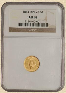 7343-03 1854 $ Gold Indian AU58 NGC Type 2
