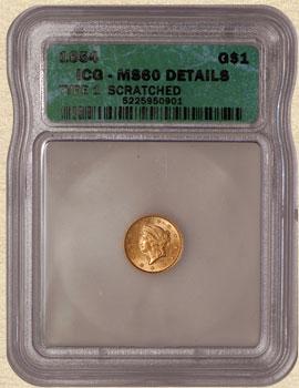 4340-28 1854 $ Gold Liberty MS60 Details ICG Type 1