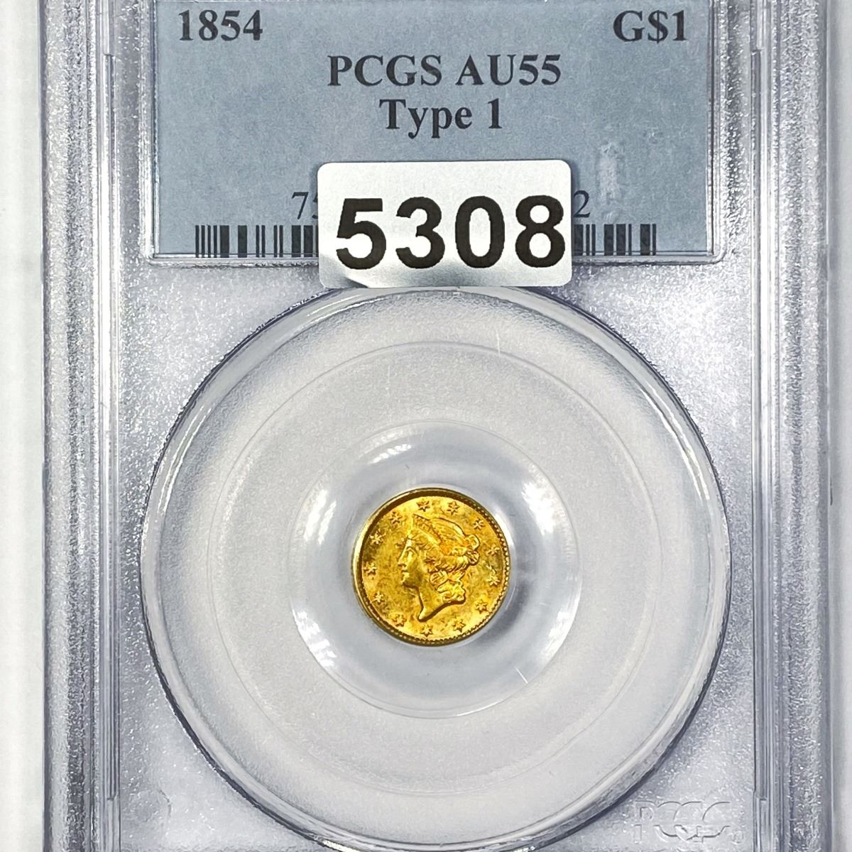 1854 Gold Seated Liberty Type 1 $1 PCGS - AU55