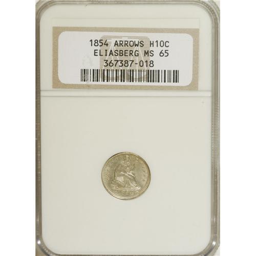 <B>1854 H10C Arrows MS65 NGC.</B></I> Ex: Eliasberg. A strongly lustrous and boldly defined example that hails from one of the all-time great collections. Champagne overtones grace the fields of this Arrows piece, struck from clashed dies. Census: 50 in 65, 19 finer (4/07).<BR><I>From The Palakika Collection.</B></I><BR><BR><b>Shipping:</b> Coins & Currency (<a target="_blank" href="http://www.heritageauctions.com/common/shipping.php">view shipping information</a>)