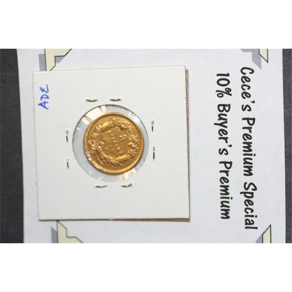 1854 Indian Princess $3 Gold Coin, Repaired **CeCe's Premium Special 10% Buyer's Premium-The Lot Only!**