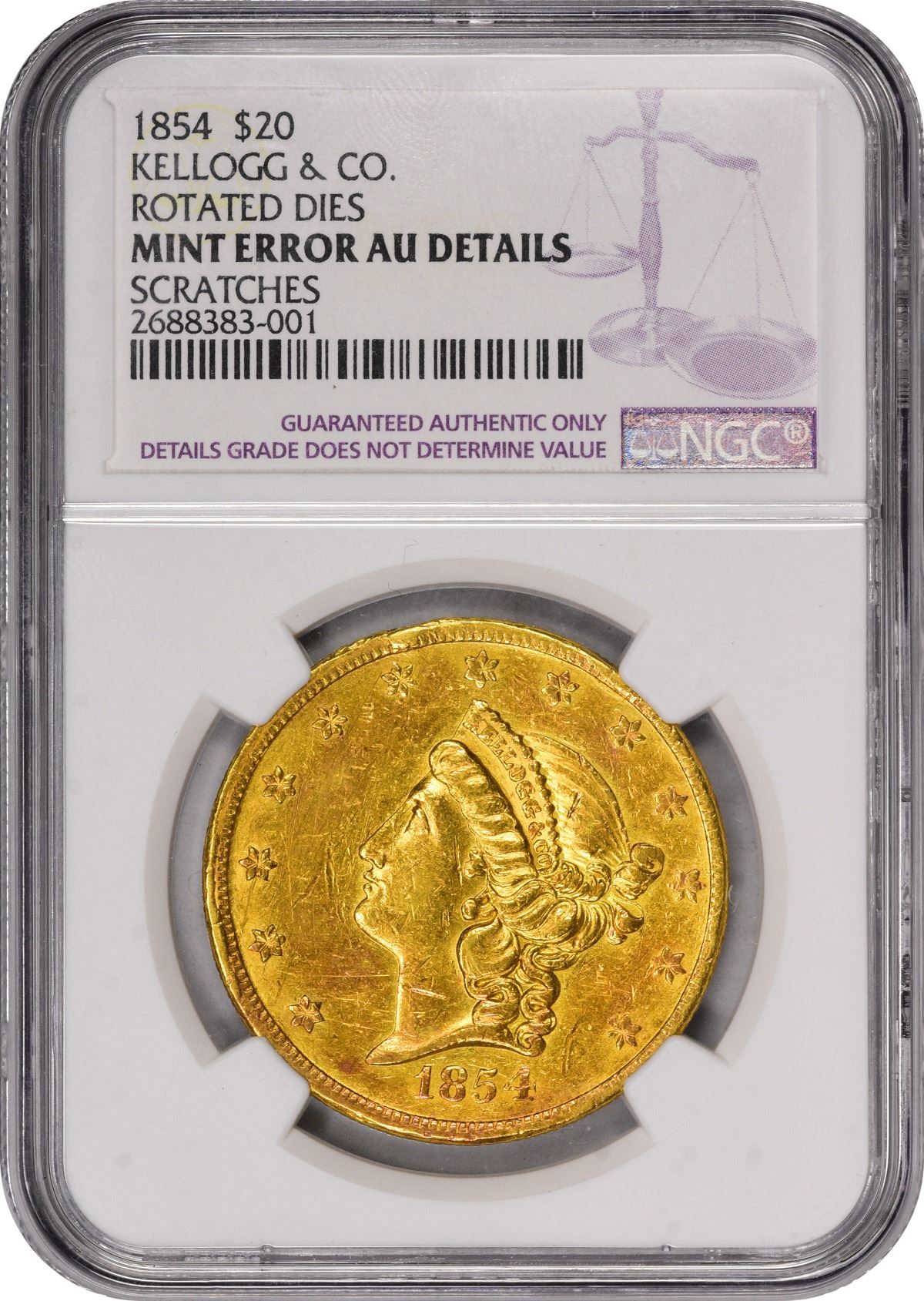 A thoroughly attractive coin except for vertical obverse scratches in the field before Liberty’s portrait – “they” always do “it” to the nice coins! The medium gold surfaces still offer much mint frost along with lively splashes of deep sunset-orange toning and few marks of any nature that were gained in circulation save for a small rim bruise at 11 o’clock on the obverse. Reverse die aligned to 200° or so, head of eagle to 1 o’clock instead of the customary noon position. Well worth more than a casual glance.