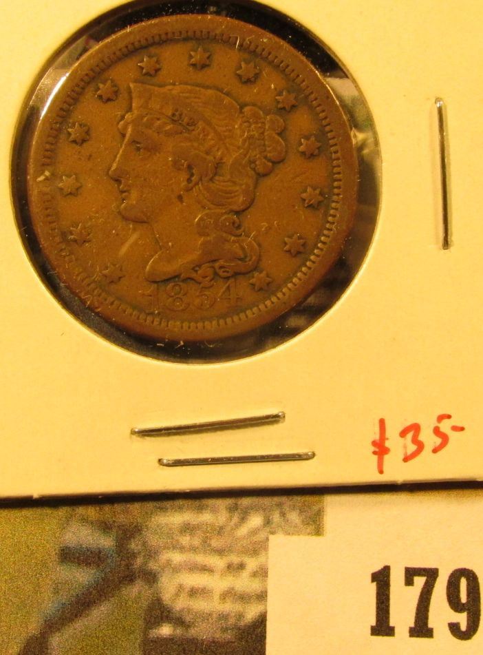 1854 Large Cent, VF, value $35