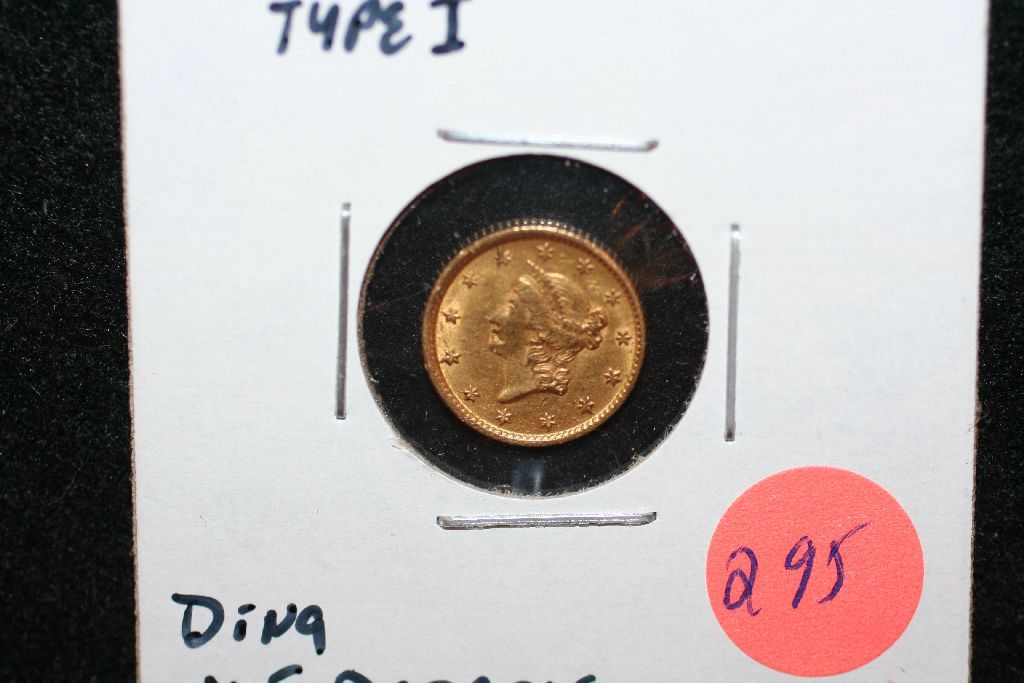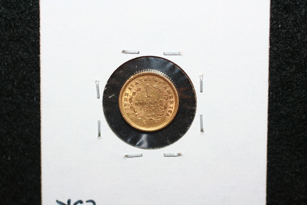 1854 Liberty $1 Gold Coin, Type I, Ding, XF Details