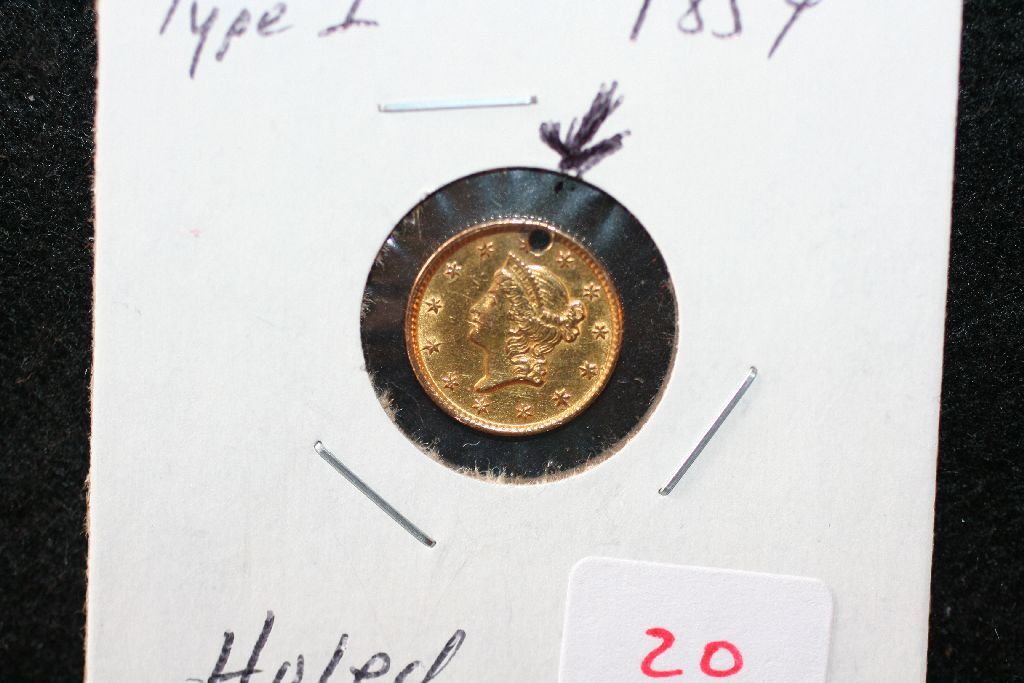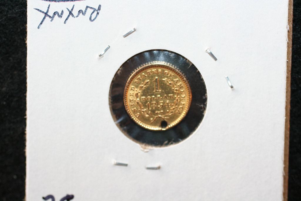 1854 Liberty $1 Gold Coin, Type I, Holed