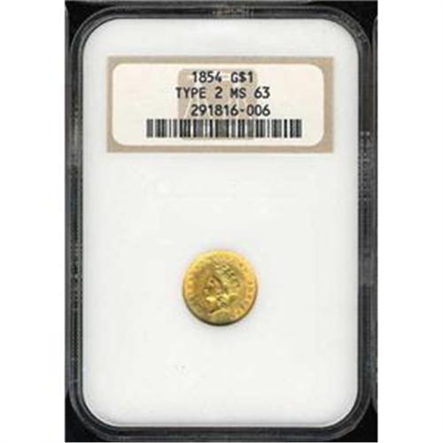 1854 Liberty Gold Dollar G$1 NGC MS63 Type 2
